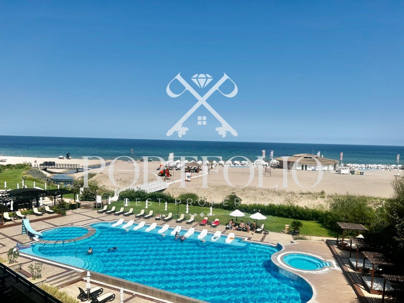 предлага в продажба голям луксозно мебелиран двустаен апартамент в елитният комплекс Оазис Бийч Клуб ситуиран на първа морска линия в с. Лозенец.