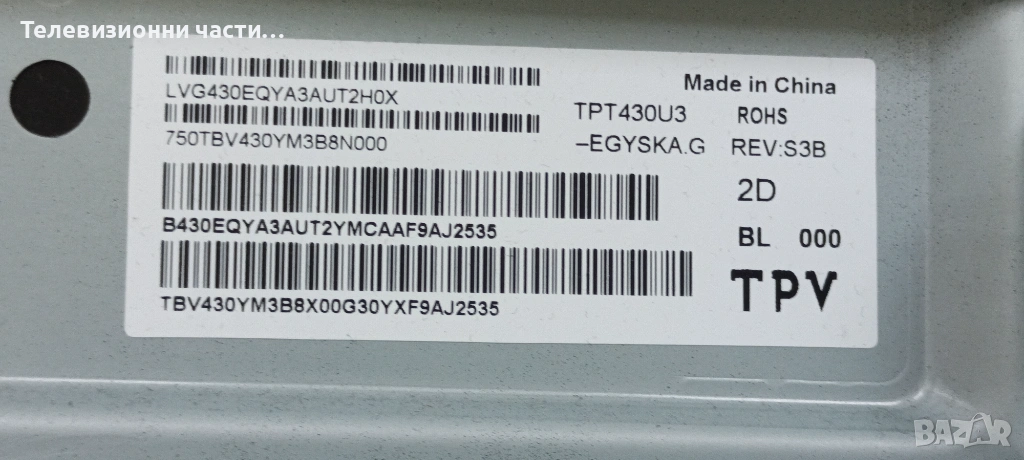 Philips 43PUS6554/12 със счупен екран.Панел TPT430U3-EGYSKA.G REV:S3B.Матрица LC430EQY(SM)(A3)