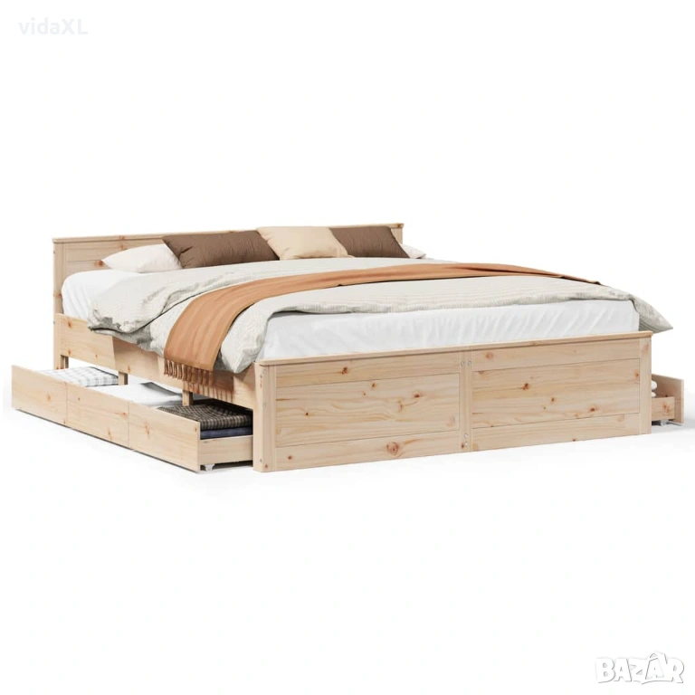 vidaXL Рамка за легло без матрак, с табла, 180x200 см, бор масив(SKU:3308756)