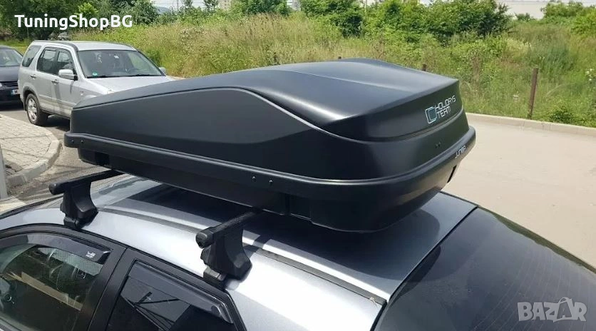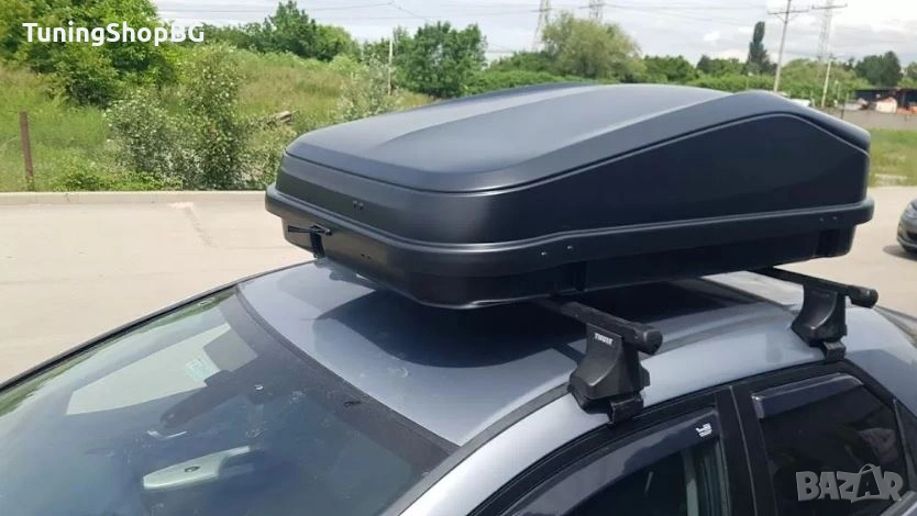 Кутия за багажник за кола изработена от висококачествена пластмаса, подходяща за всяка една марка автомобил оборудвана с напречни греди на тавана.