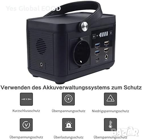 Преносимата електроцентрала с капацитет 88.8 Wh е надежден източник на енергия за къмпинг, пътувания с автомобил и аварийни ситуации. Оборудвана е с литиева батерия 24000 mAh (3.7 V), която осигурява стабилно захранване за различни електронни устройства. Компактният и лек дизайн я прави удобна за пренасяне и използване на открито. Подходяща е като резервно захранване при спиране на тока и за използване на места без електрическа мрежа.