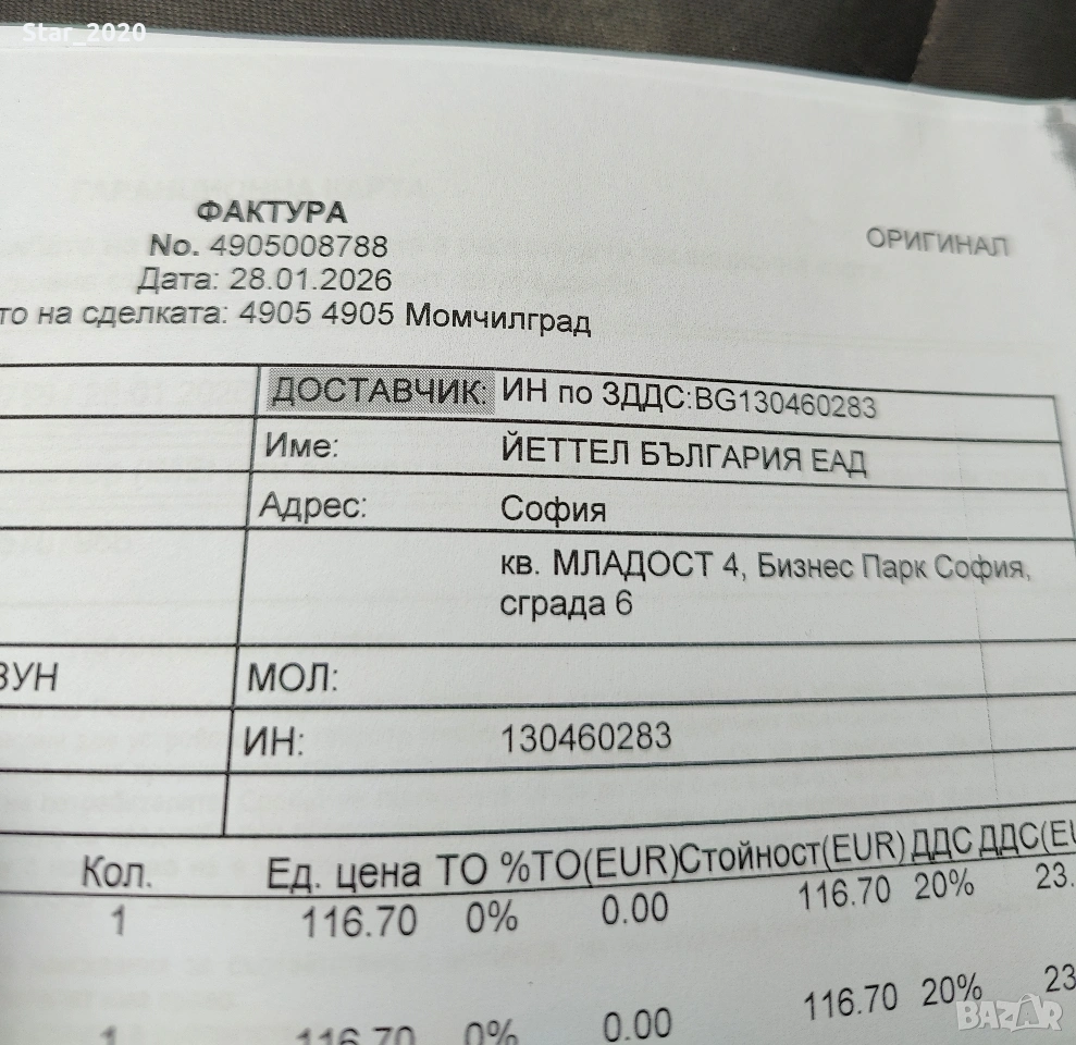 Телефона е чисто нов не отворена кутия!!! Закупен на 28.01.2026 г. Телефона е закупен кеш !!!