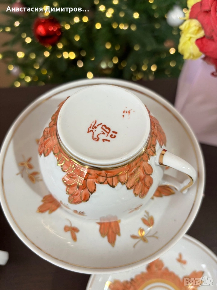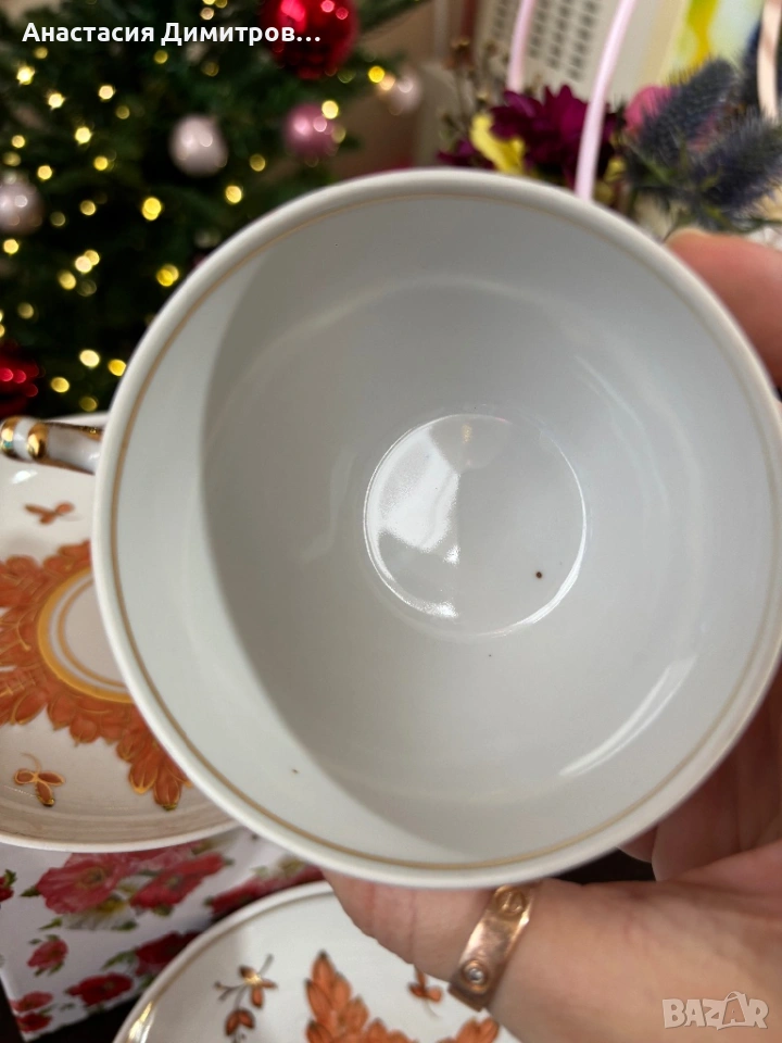 Състоянието му е витринно. Никога не е бил използван. Само на една чашка има фабричка черна точка (вижте последната снимка)