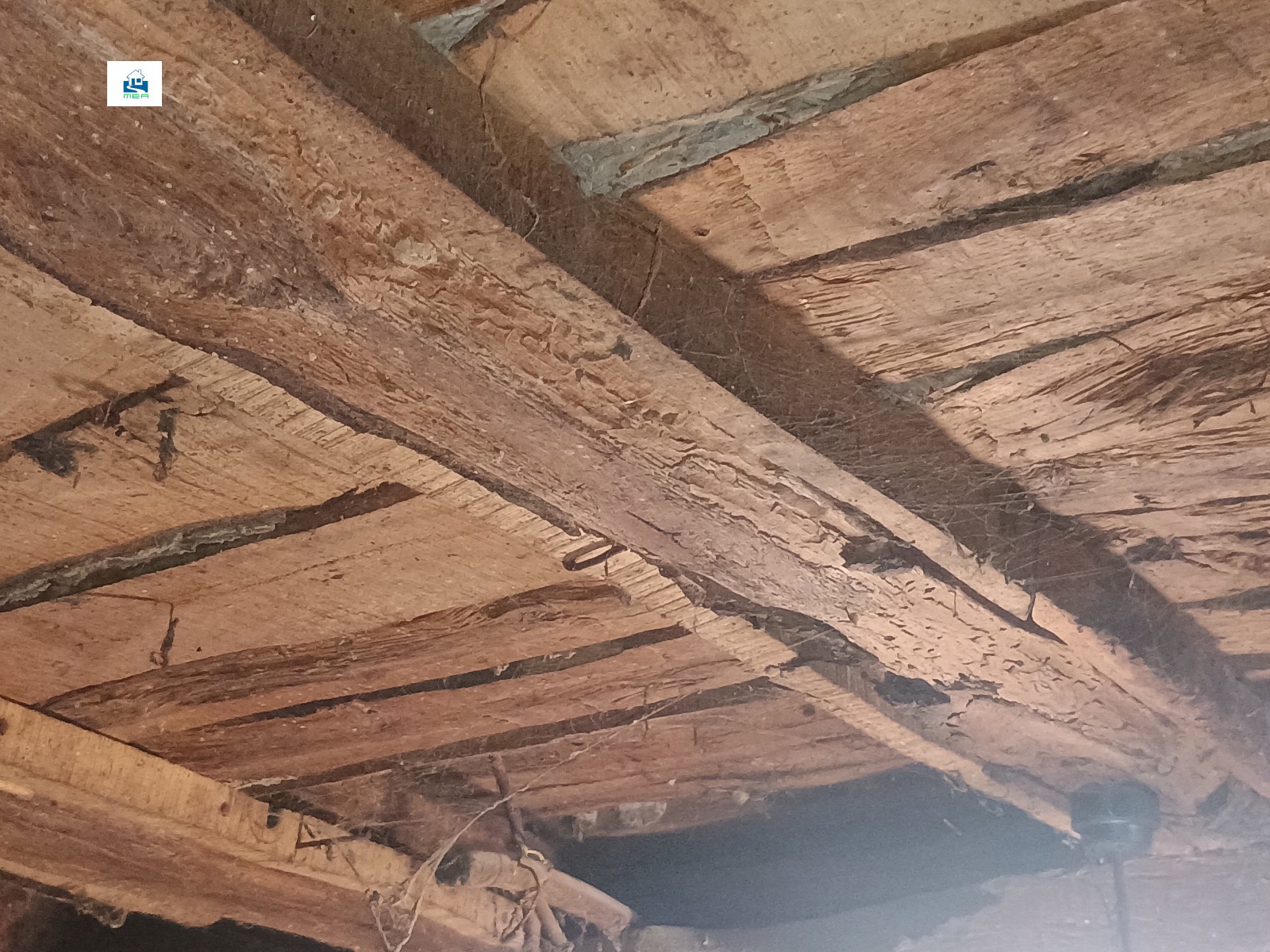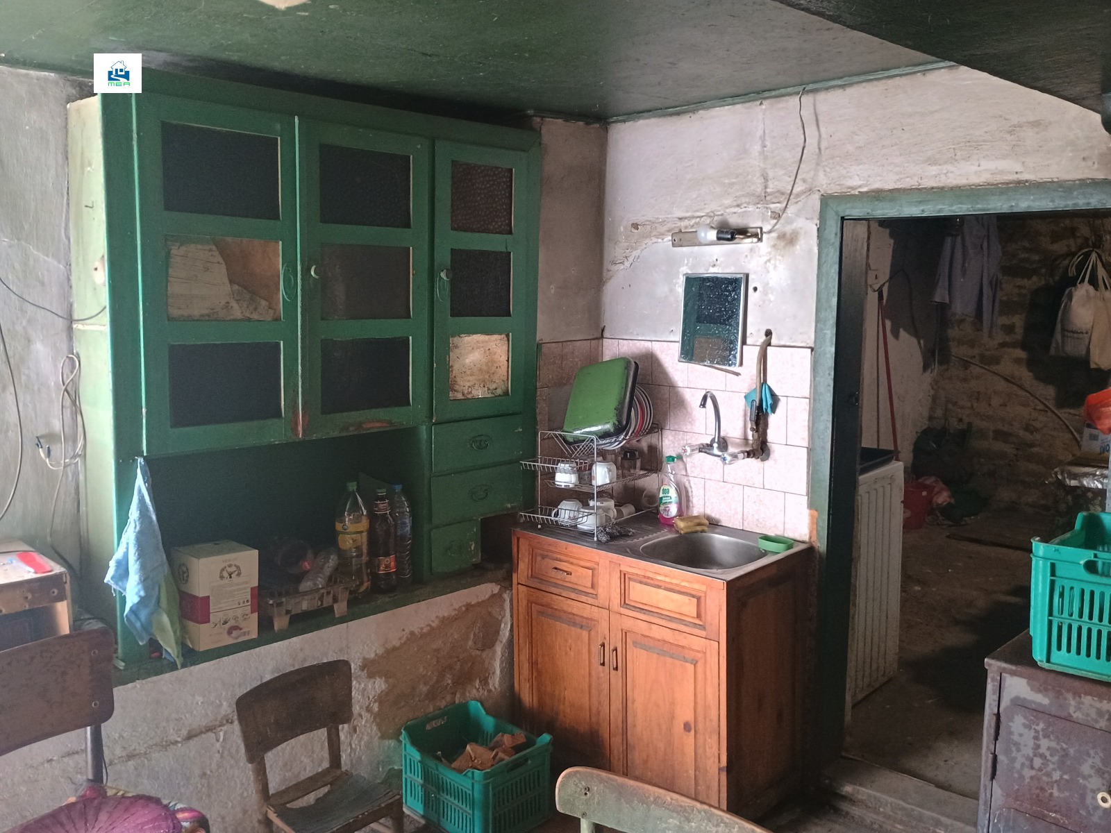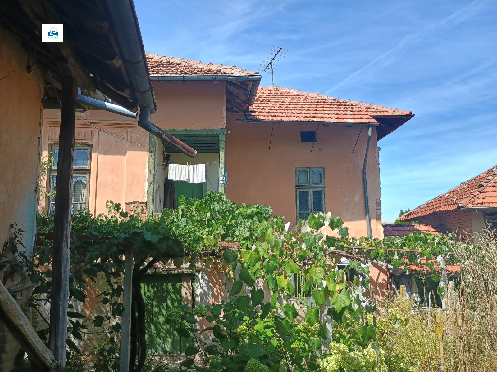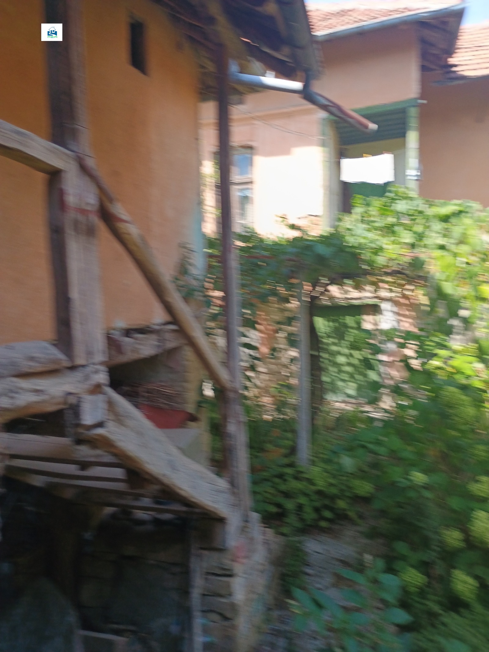 2. Къща , представляваща полумасивна жилищна сграда на два етажа, с тухлени зидове и гредоредна подова конструкция със застроена площ от 54 кв. м на етаж или 108 кв. м за къщата. Има вътрешна баня и тоалетна. Разпределението на първия/партерния/етаж : две стаи със санитарен възел и преход от едната към другата. На втория етаж: три стаи. Къщата е здрава, няма следи от течове на вода но има нужда от цялостно реновиране, особено на покрива. Къщата е изградена на уличната регулация / в началото на двора /. Отоплението е на печки с дърва и въглища.