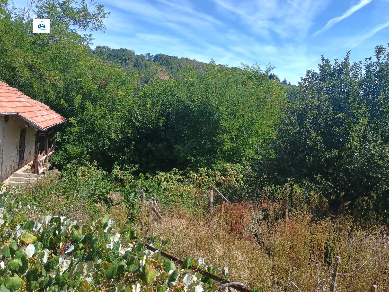 1. Парцел с големина 986 кв. м, с лице на асфалтов път 23 м . Парцел е с неправилна геометрична форма, денивелация, ограден с масивна ограда. Има външна мивка и плодови дръвчета.