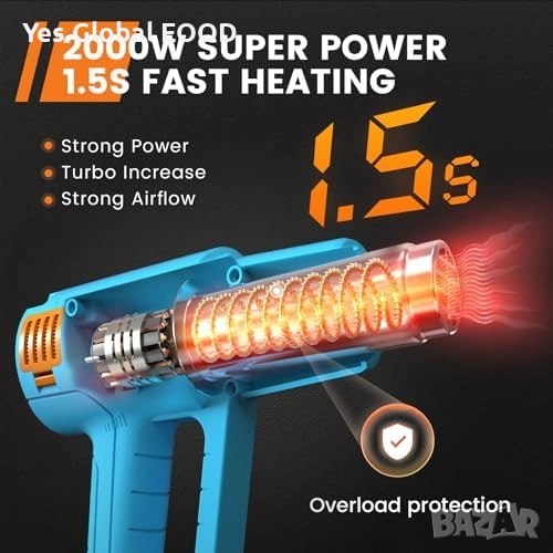 GoGonova пистолет за горещ въздух 2000W с бързо нагряване