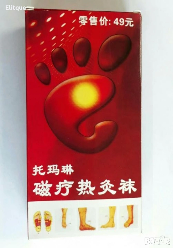 Затоплящи турмалинови чорапи Turmaline Турмалиновите чорапи са създадени за комфорт, релаксация и подкрепа на доброто състояние на краката и цялото тяло. Благодарение на вложеното турмалиново влакно, те осигуряват затоплящ ефект, статичен масаж и стимулиране на важни акупунктурни точки на ходилата. Чорапите подпомагат кръвообращението и лимфообръщението, отпускат мускулите и намаляват усещането за умора и напрежение в краката. Подходящи са за ежедневна употреба, както и при хора, които прекарват дълго време прави или в движение. Ползи от турмалиновите чорапи: Отпускат мускулите и намаляват напрежението Засилват кръвообращението и лимфообръщението Спомагат за затопляне на студени и премръзнали крака Намаляват умората и неприятните миризми Осигуряват лек масаж и стимулират акупунктурни точки Подпомагат общото усещане за релакс и комфорт Препоръчват се при: Болки и умора в краката Възпалени вени и варикоза Артрози, мускулни болки и невралгии Изтръпване на пръстите и чувствителност към промени във времето Стрес, нервно напрежение и проблеми със съня Според традиционната китайска медицина, стимулирането на точките на ходилата подпомага енергийния баланс и активира обменните процеси в организма. Материал: 90% турмалиново влакно 10% еластан Начин на употреба: В началото се носят по 15–20 минути на ден. Постепенно, в рамките на 3–6 седмици, времето може да се увеличи до 2–3 часа два пъти дневно или до 5–8 часа непрекъснато носене. Доставка с Еконт с опция преглед до 3 работни дни.