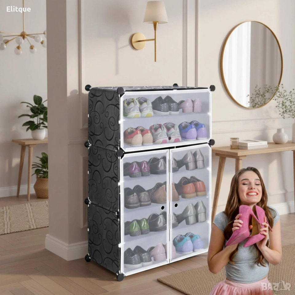 Черен модулен шкаф за обувки - функционалност и красив дизайн в едно