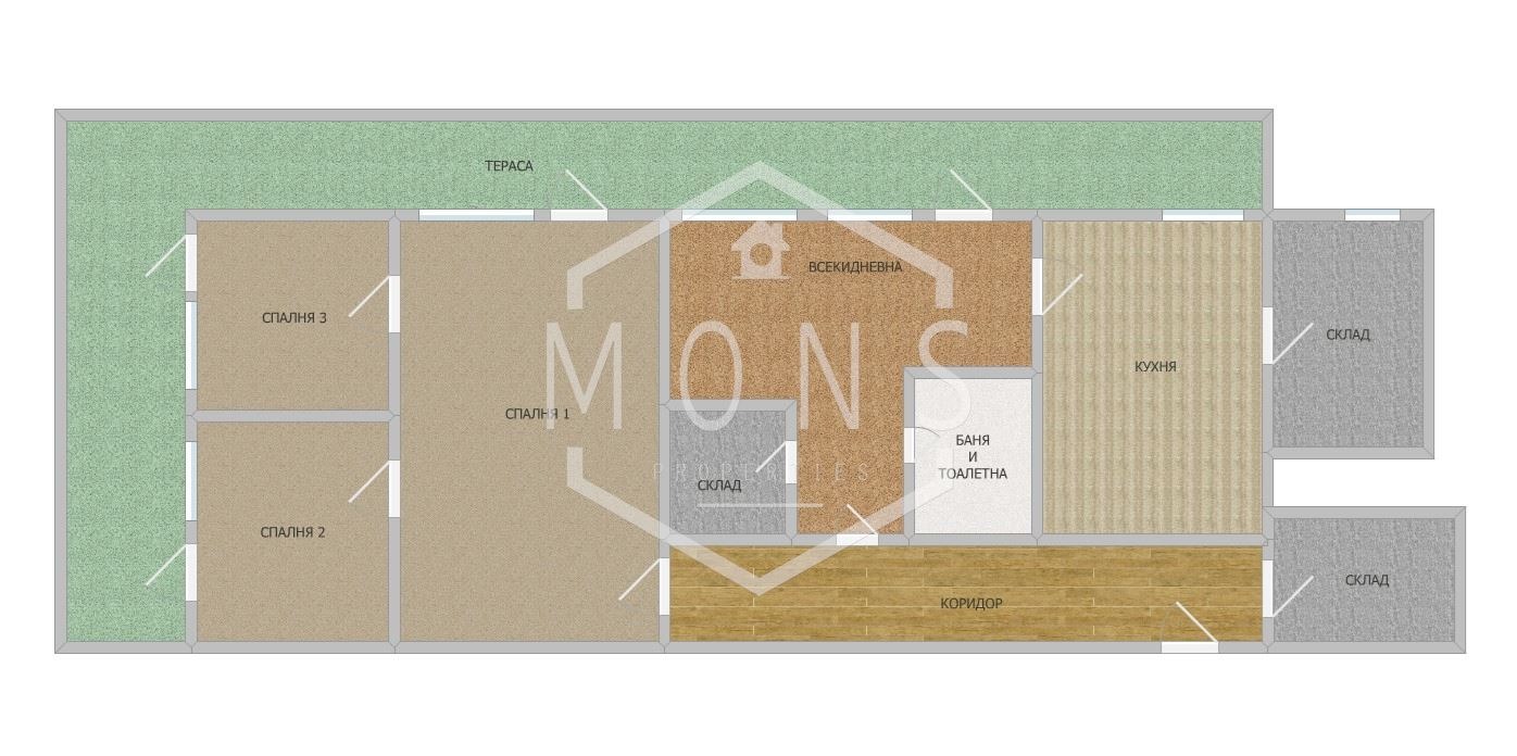 Имотът е с обща площ от 100 кв.м, като ЗП е 90 кв.м.