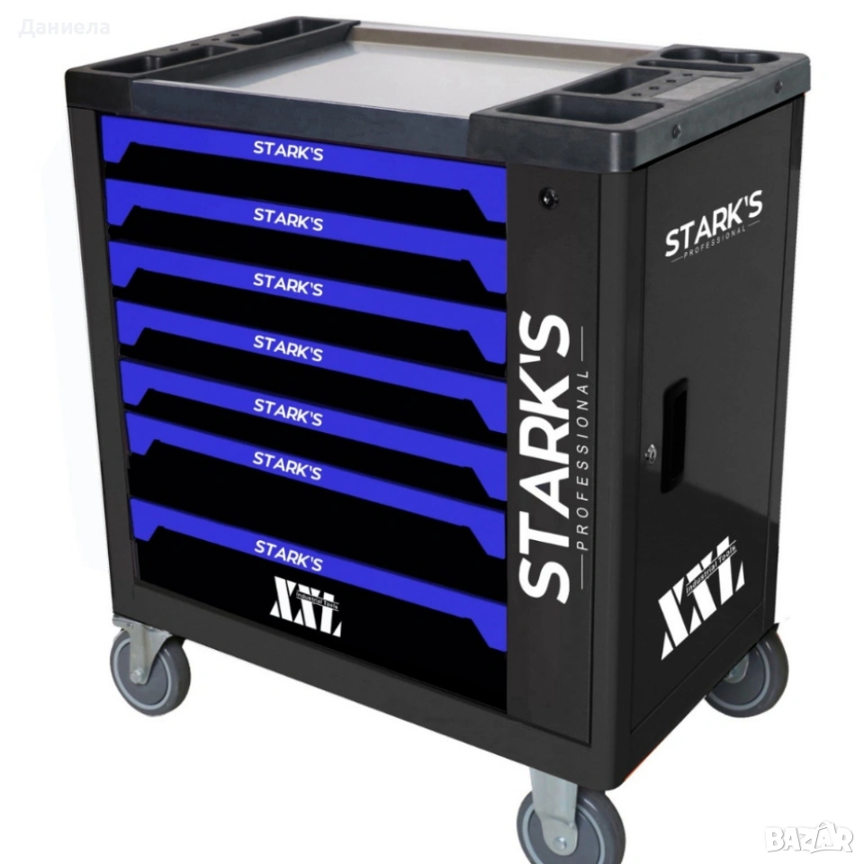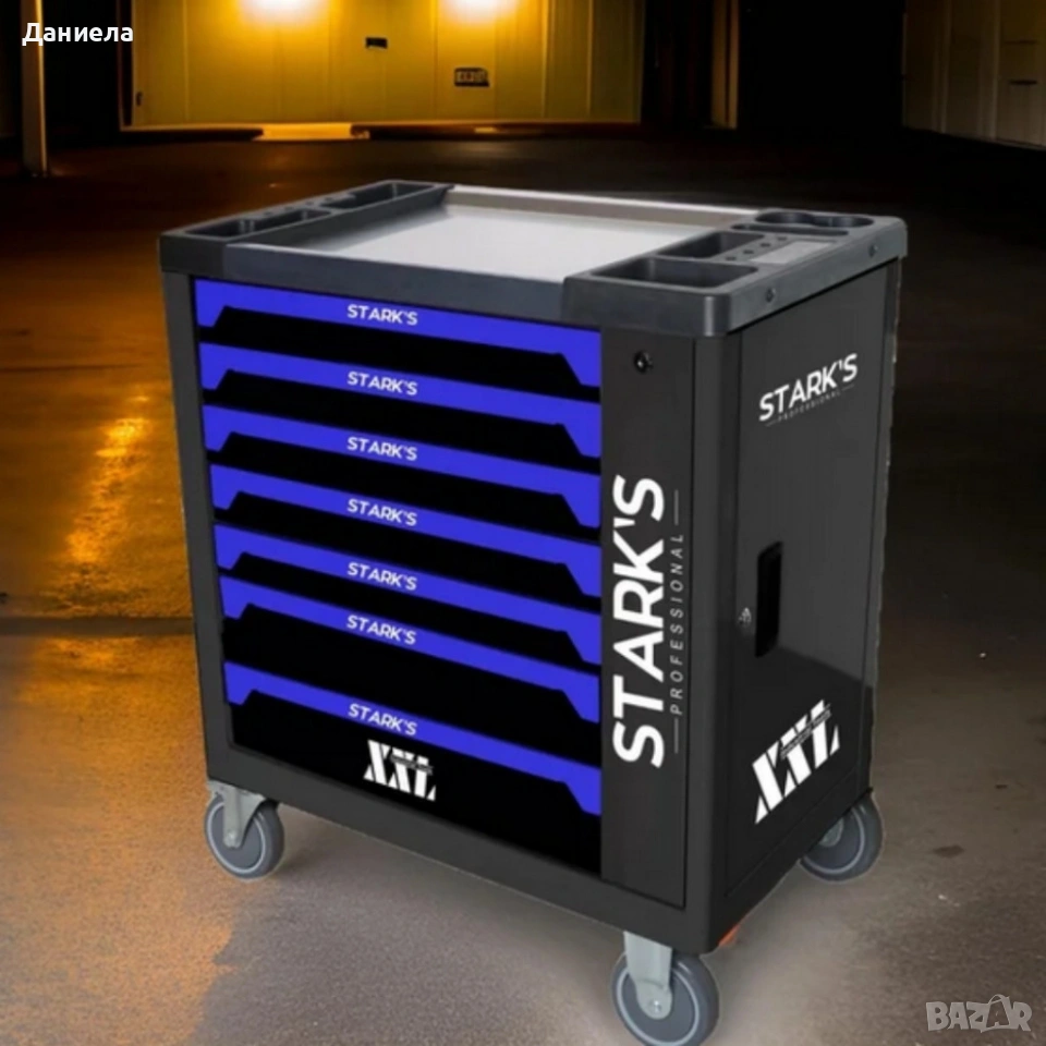 Основни технически параметри: височина на куфара 84 см; приблизителни размери: ширина 72 см, дълбочина 40 см. Теглото и здравината на конструкцията са съобразени за професионална експлоатация, а чекмеджетата работят на плавни водачи за бърз достъп. Комплектът включва 258 части, подредени в 7 чекмеджета: тресчотки и вложки (1/4