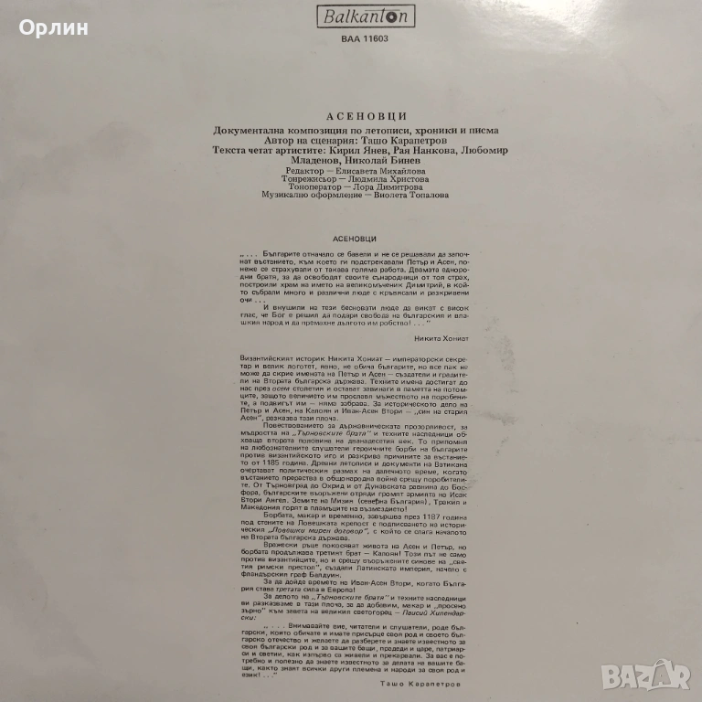 Асеновци - документална композиция - ВАА 11603, снимка 1 - Грамофонни плочи - 53339557 Асеновци - документална композиция - ВАА 11603, снимка 2 - Грамофонни плочи - 53339557 1/2