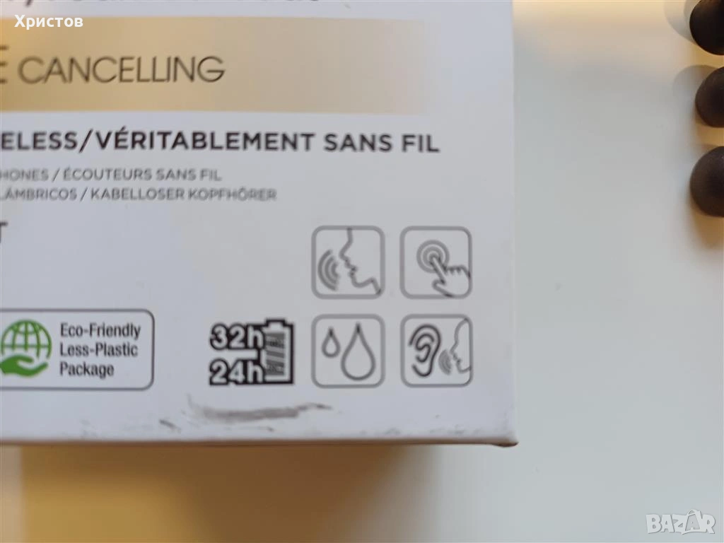 - Живот на батерията: До 32 часа (BT) / 24 часа (NC включено) общо време за възпроизвеждане (включително кутийката).