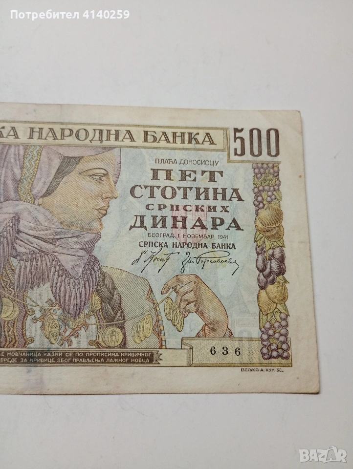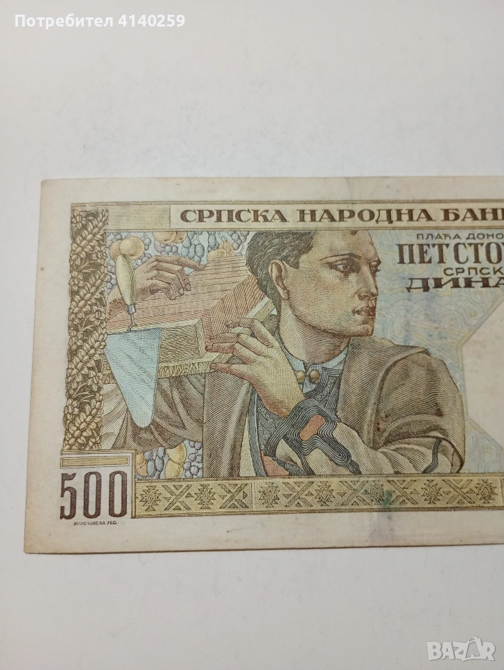 СЪРБИЯ БАНКАТА 500 ДИНАРА 1941 Г СЪСТОЯНИЕ ОТЛИЧНО ПОЛУЧАВАТЕ СНИМАНАТА БАНКНОТА РАЗГЛЕДАЙТЕ ДРУГИТЕ МИ ОБЯВИ ДА КОМБИНИРАТЕ ДОСТАВКА ЕКОНТ ЗА ВАРНА ЛИЧНО