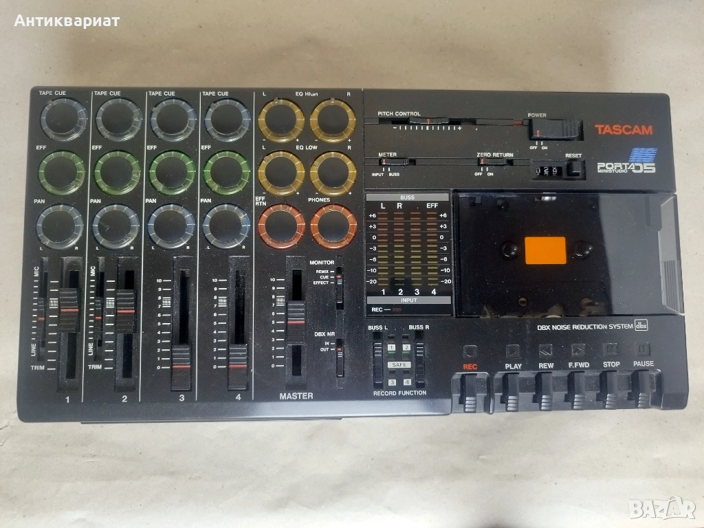Много запазен, отлично работещ 4 пистов рекоредер TASCAM PORTA 05 HS (това е "HS", по-новият модел на стандартния PORTA 05, с по-висока скорост на касетката), тестван, моля - вижте видеото ми. Единствената забележка се вижда на последната снимка в обявата! Изпращам по Спиди и по Еконт.