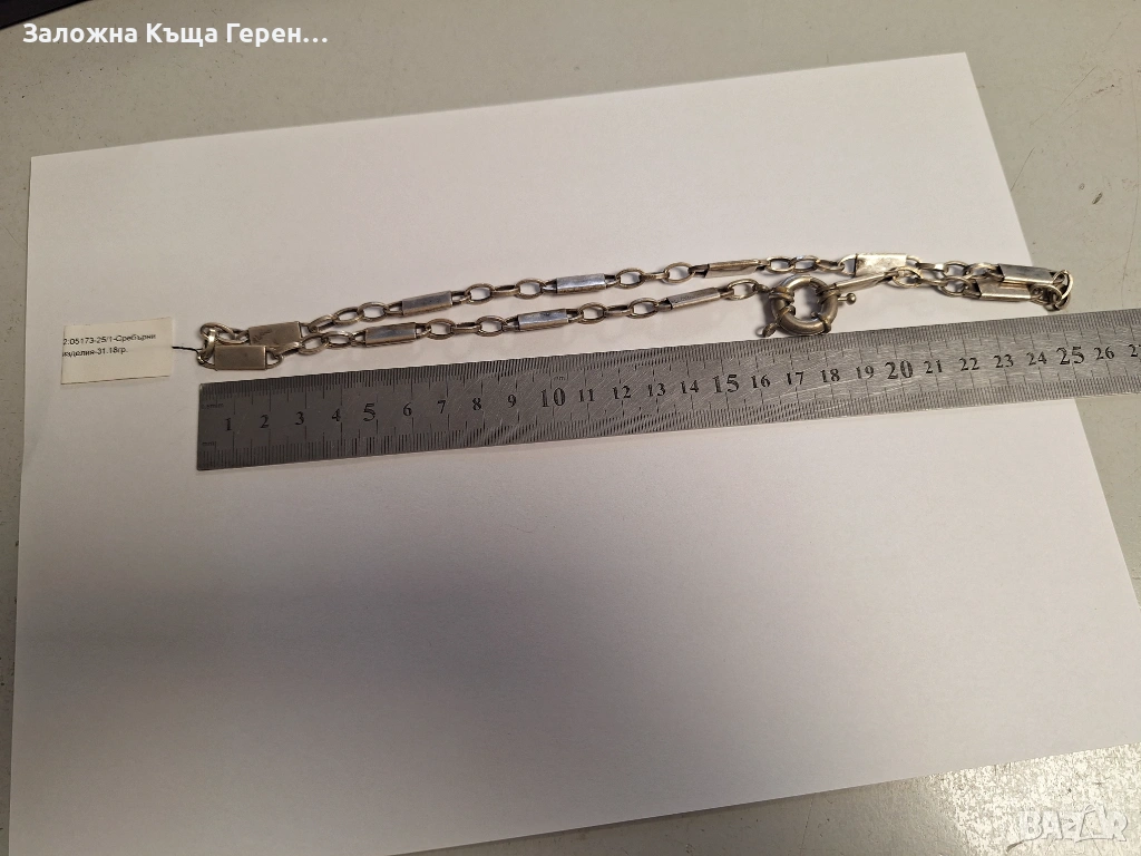 Сребърен синджир 31,18гр., снимка 1 - Колиета, медальони, синджири - 53340123 Сребърен синджир 31,18гр., снимка 2 - Колиета, медальони, синджири - 53340123 Сребърен синджир 31,18гр., снимка 3 - Колиета, медальони, синджири - 53340123 1/3