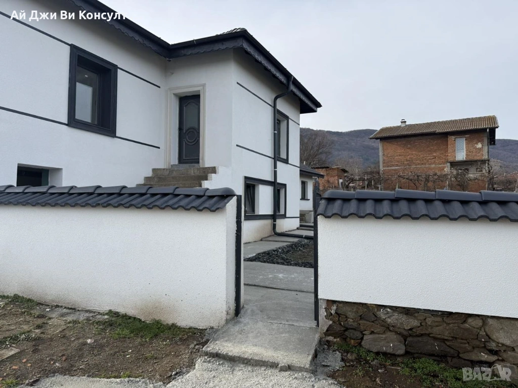 Къщата е на два етажа, изцяло обновена през 2025 г., и се намира в голям, равен и добре оформен парцел, подходящ както за постоянно живеене, така и за къща за гости или инвестиция.