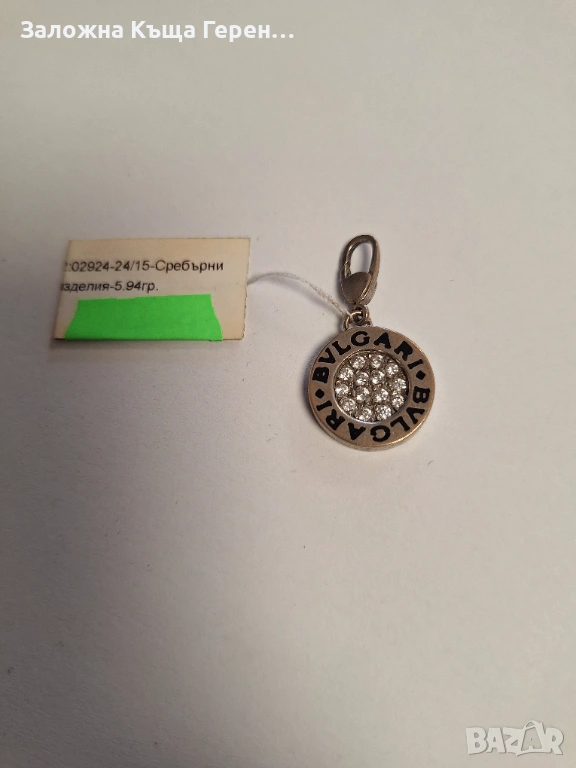 Сребърна висулка bvlgari 5,94гр.