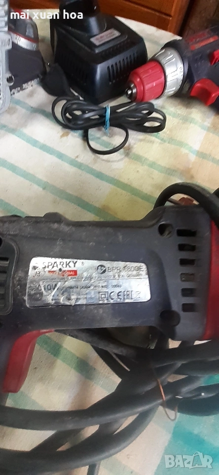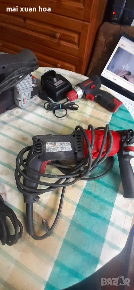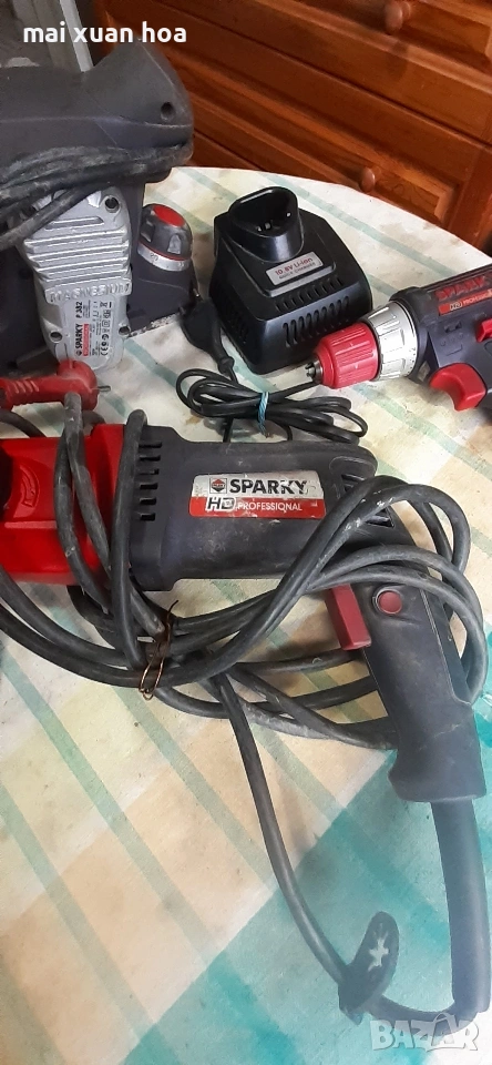 продавам професионални инструменти на марка Спарки. винтовер 10,8 вол. с зарядно 40 Ев. Перфоратор 65 Ев. Ренде 50 Ев. Прободен трион , с регулиране на обороти 35 Ев. Машините работят перфектно, преглед и тест ..