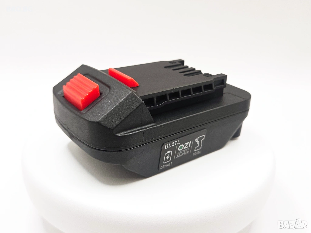 Преходникът DL2TL (Dewalt към Total) е качествен, монолитно отлят адаптер, който позволява използването на батерии от серията Dewalt с инструменти на марката Total. Oсигурява надеждна връзка, издържа на високо натоварване без прегряване.