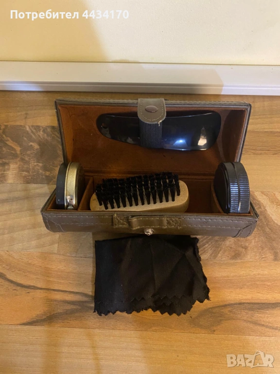 Продавам стилен и висококачествен комплект за поддръжка на кожени обувки. Комплектът е подреден в елегантен калъф и е идеален за пътуване или за съхранение у дома.