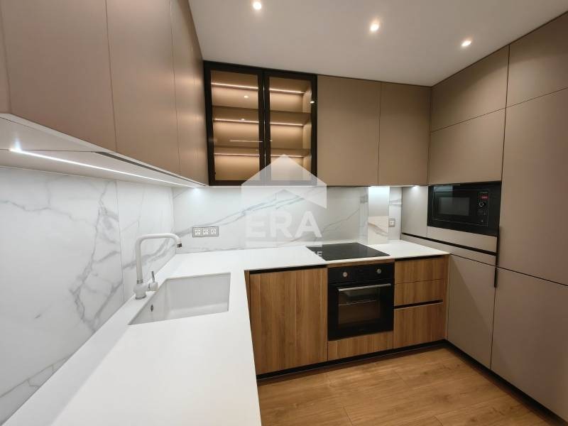 ЕРА Имоти Надежда представя един изключителен имот ПОД НАЕМ в центъра на града, в непосредствена близост до кея. Апартаментът е ситуиран на първи етаж в нова, модерна сграда, която предлага лукс и комфорт в едно. Сградата е газифицирана, като допълнително има и системи за филтрация и омекотяване на водата, за да предотврати бързата амортизация на домакинските електроуреди. В имота има подово отопление на газ, което се регулира според нуждите на наемателите от всяка стая. Освен това има монтирани климатици в спалнята и всекидневната,както и висок клас бойлер в банята. Кухнята е оборудвана с вградени електроуреди като хладилник, микровълнова, фурна, пералня,комбинирана със сушилня и съдомиялна.
