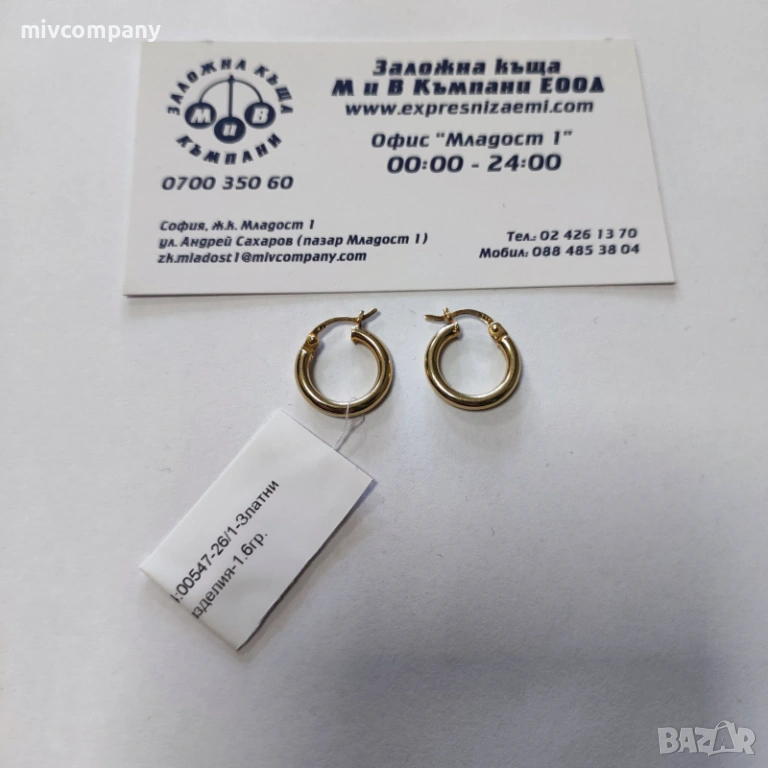 Златни обеци 1.60гр. → Обява 53340904