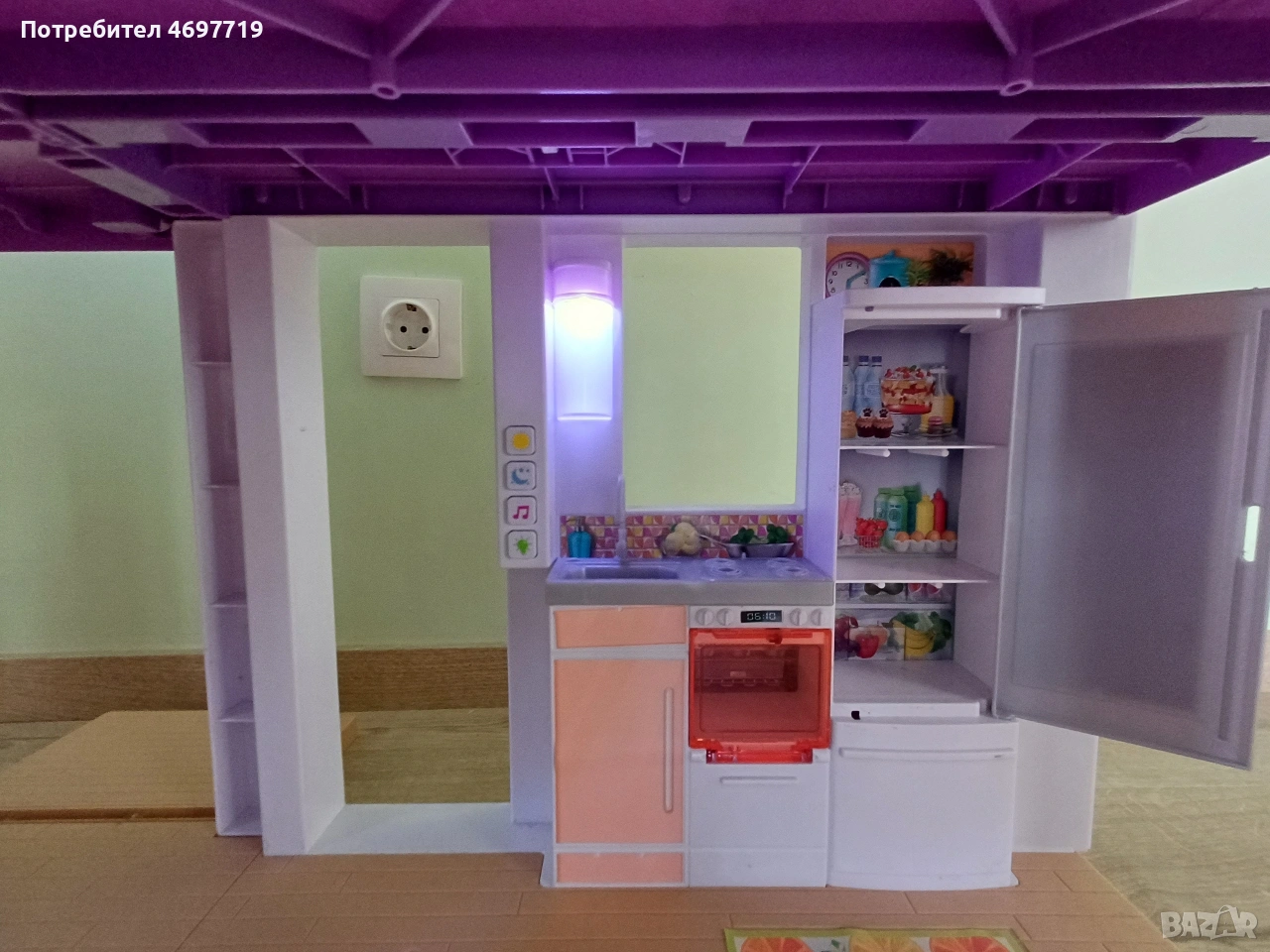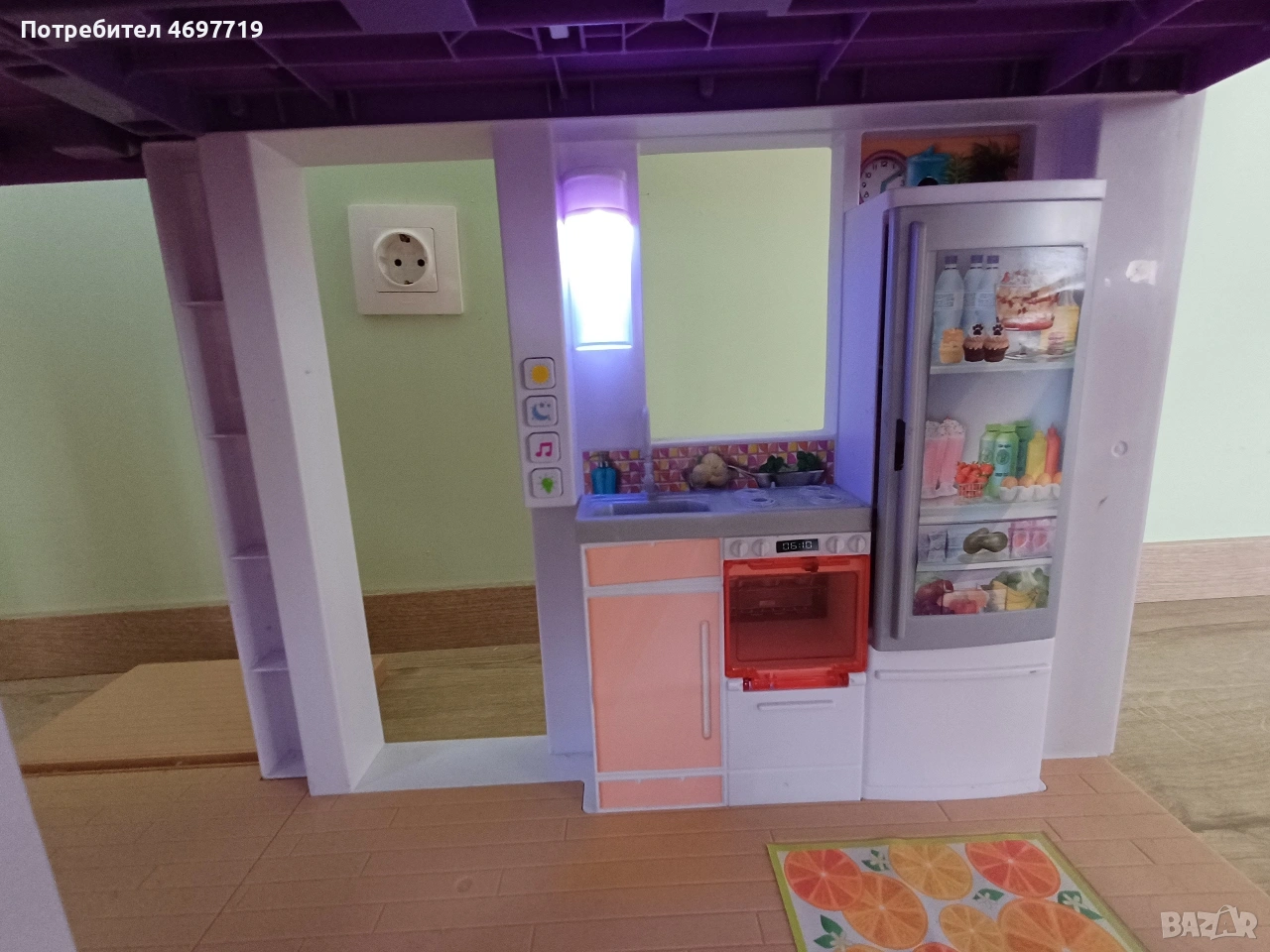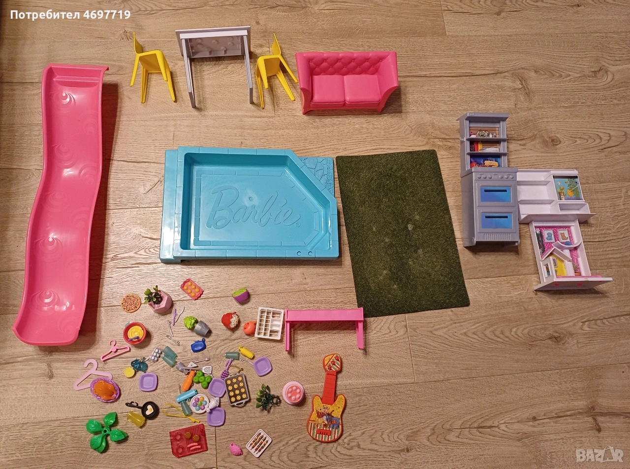 Предлагам страхотна къща на Барби, на три етажа е висока 109 см и широка 104см. Къщата е в отлично състояние, с работещо осветление и звукови ефекти. Звуковите фонове, песните и светлинните настройки позволяват на въображението да пренася историите от деня в нощта или времето за игра да се превърне във време за парти – всичко това с едно натискане на бутона. Асансьора е подвижен. При интерес може да се предложи и обзавеждането й. За по-големи деца може да се използва като част от интериора в детска стая за подреждане на книги и други детски аксесоари и вещи. Цена 180 Евро.