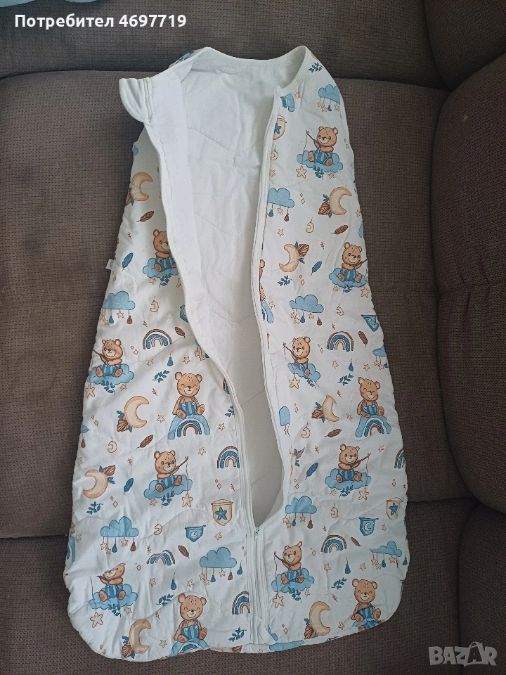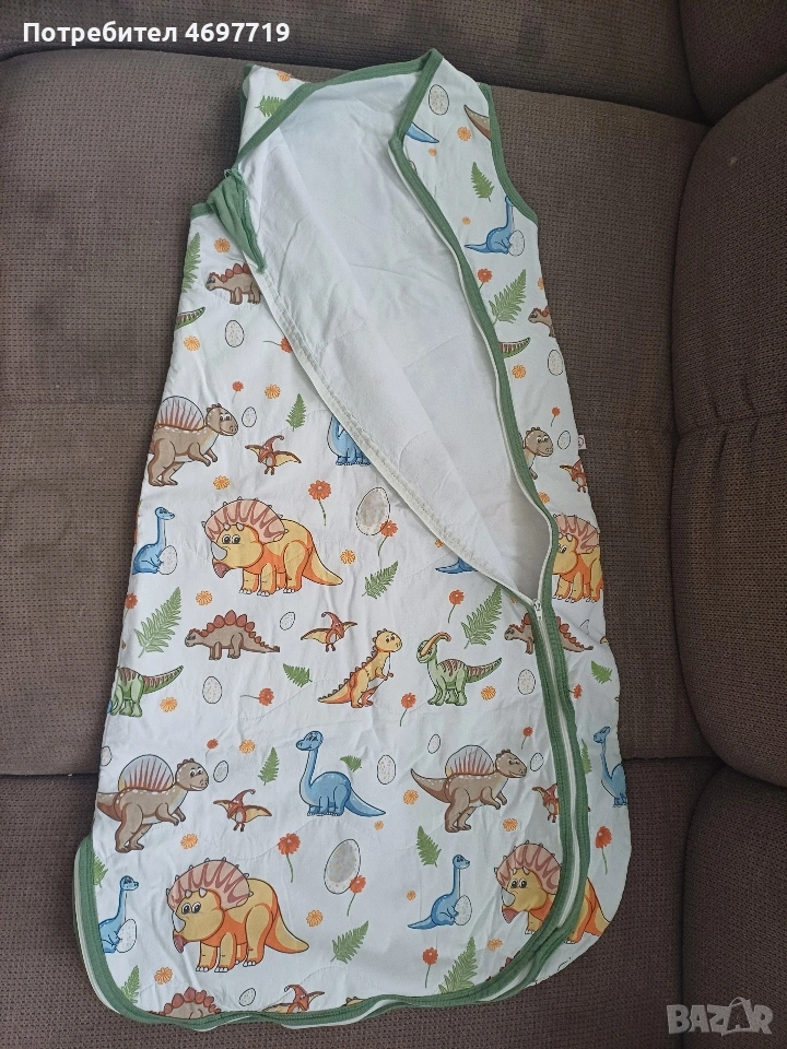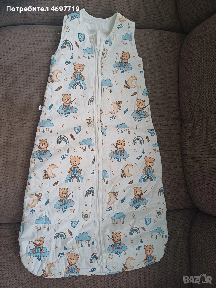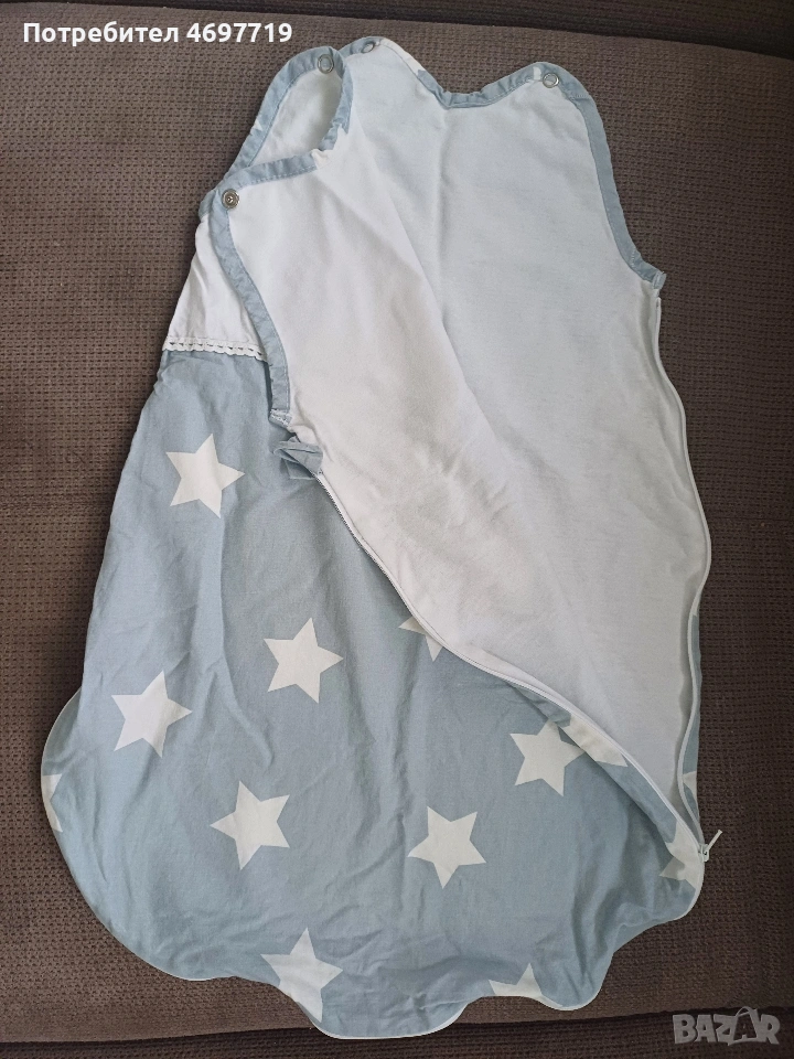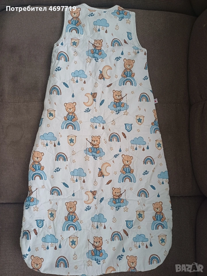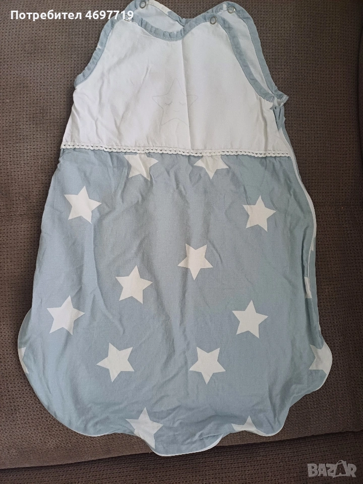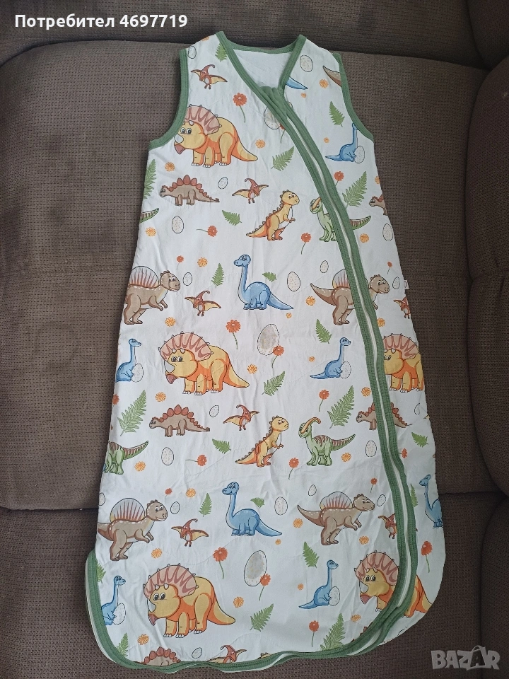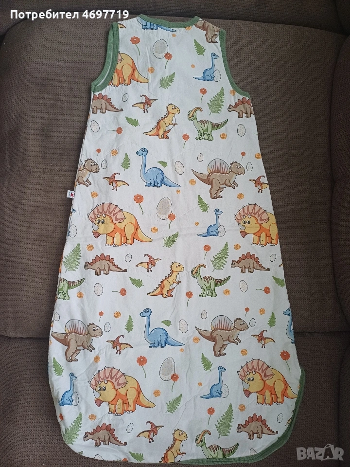 Снимки 1,2 и 3.Памучен зимен спален чувал с двупосочен цип Happy blue bear, размер 86 - 92, за 1-2 години Предлагам памучен, зимен спален чувал в приятен десен с мечета. Чувалчето е за бебе на възраст 1 -2 години, размер 86 - 92. Памучна вата, топъл, с лесен достъп до бебето, нов, в отлично състояние. Предлага се със спецификация за правилна употреба и поддръжка. Ципът на този спален чувал е с възможност да се отваря в двете посоки. Отгоре надолу, за обличане и събличане, а отдолу нагоре, ако желаете да смените памперса на детето без да го събуждате. Двата края на двупосочния цип завършват с текстилни предпазители, които защитават нежната детска кожа. Топлопроводимостта на спалния чувал е 2.5 tog /0,232 кв.м.KW/. Този показател е мярка за устойчивост на топлопреминаване при постоянен режим по БДС EN ISO 11092:2014 Изработен е от памучен плат тип ранфорс - външната част е в бял цвят, обсипан с щампирани картинки на мечета, а вътрешния в изчистено бяло. Пълнежът е от топла вата. Този продукт е изработен от сертифициран памучен плат по Oeko-TEX® 100, който е световен стандарт и система за независимо тестване и гарантира безопасността на материята Кройката и материалите, които са използвани отговарят на изискванията за безопасност на детските спални чувалчета по БДС EN 16781 Спалният чувал е предназанчен за използване само в помещения с температура от 17 до 20 градуса Облеклото, с което обличате детето преди да го сложите в спалния чувал зависи от температурата в стаята и индивидуалните особености на детето. Добре е да проверявате гръбчето на детето, за да сте спокойни, че е добре темперирано. Прегряването може да е опасно за детето! Недостатъчното затопляне - също, то може да бъде повод за простудни заболявания. Ето защо е много важно да следите температурата в стаята, която да бъде около 20°C Цена 20 евро Снимки 4,5 и 6. Памучен пролетно-есенен чувал за спане с динозаври, размер 86 -92, от 1 до 2 години. Предлагам памучен пролетно -есенен чувал за спане, в отлично състояние, почти не е ползван. Предназначен е за бебе между 1 и 2 години, размер 86-92. Предлага се с оригинална спецификация за поддръжка и употреба. Този детски спален чувал е прекрасно предложение за пролетта и есента, когато температурите са все още променливи. Спаленият чувал е изработен от два пласта качествено памучно хасе тип ранфорс и подплатен с тънка полиестерна вата. За повече издържливост на пране и сушене сме капитонирали всички пластове. Това прави чувалчето много практично и същевременно красиво - външният плат е с щампи на динозаври, а вътрешния в бяло. Топлопроводимостта на спалния чувал е 1.5 tog /0,150 кв.м.KW/. Този показател е мярка за устойчивост на топлопреминаване при постоянен режим по БДС EN ISO 11092:2014р.оКройката и материалите, които са използвани отговарят на изискванията за безопасност на детските спални чувалчета по БДС EN 16781 Цена 20 евро Снимки 7,8 и 9 Летен спален чувал на Lorelli. То е подходящо за новородени и деца до 6 месеца. То е меко и нежно на допир и ще пази от прегряване и изпотяване през горещите дни, а ще носи нежна и успокояваща прохлада.Чувалчето е чисто ново, неизползвано. Характеристики: Без ръкави; Тик-так копчета на раменцата; Широко пространство при крачетата; Топлинна устойчивост 0.5 tog. Размери: 61 х 42 х 7 cm Цена 7 Евро.