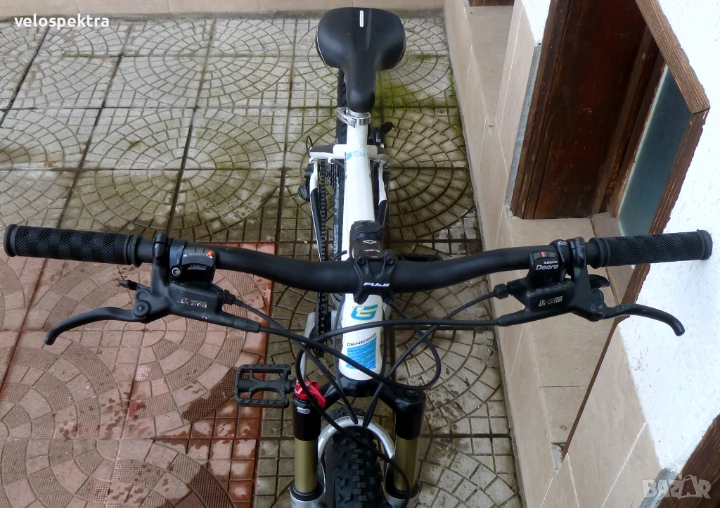 27 скорости Шимано Деоре , палцови команди 3х9 Шимано Деоре с дисплей. Две дискови хидравлични спирачки Тектро Драко . Диск 180/160
