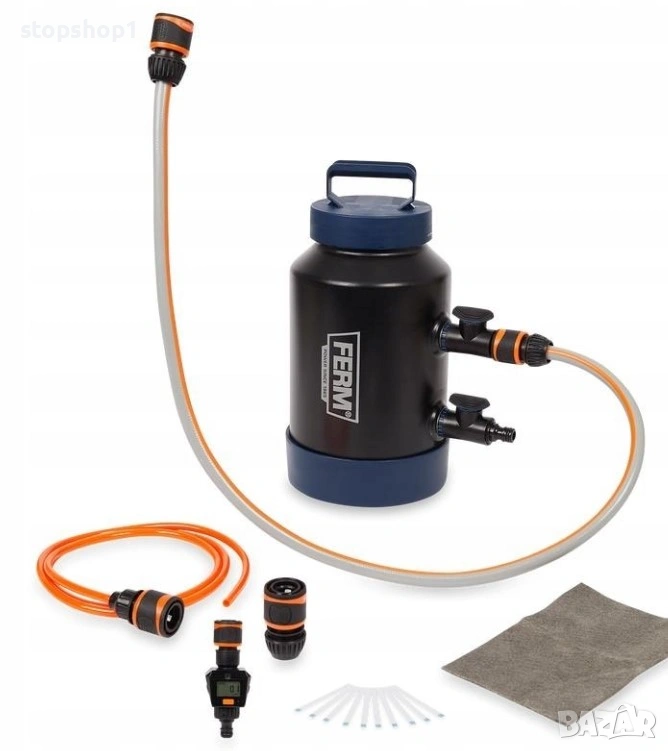 С омекотителя за вода FERM можете лесно да измиете колата или прозорците си, без да оставяте следи. Омекотителят за вода филтрира калция от водата, така че след почистване по повърхностите да не остават котлен камък. С капацитет от 4 литра, можете да работите без прекъсване. За да се улеснят нещата още повече, регенерацията се извършва с помощта на обикновена готварска сол. Трябва да се прави на всеки 1000 литра, за да има винаги налична вода без котлен камък.