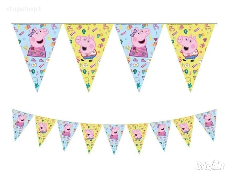 Добавете цвят към вашето парти, като разкрасите парти зоната с гирлянд с мотива на героите от приказките Peppa Pig.