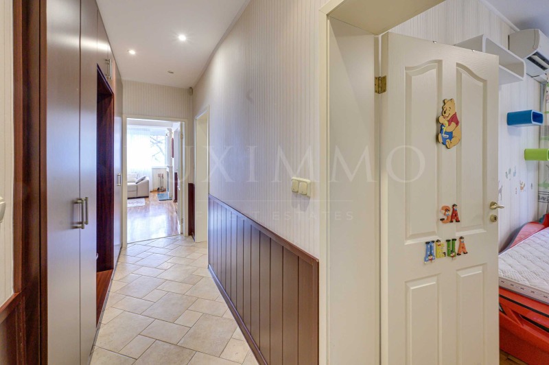 Настилките са от естествен паркет и гранитогрес, а жилището е обзаведено с абсолютно всички необходими мебели и електроуреди.