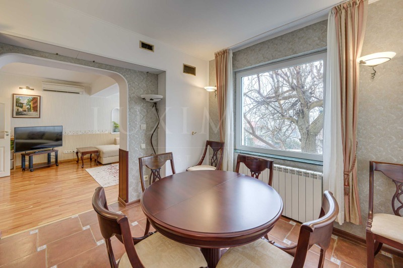Представяме Ви под наем напълно обзаведен тристаен апартамент, разположен в малка бутикова сграда с едва три апартамента и собствен озеленен двор.