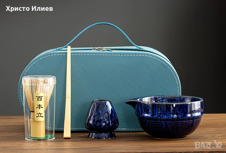 - комплект: Традиционният комплект за чай матча включва керамична купа, бамбукова бъркалка, държач за бъркалка, мерителна лъжичка и подаръчна кутия й за автентично приготвяне