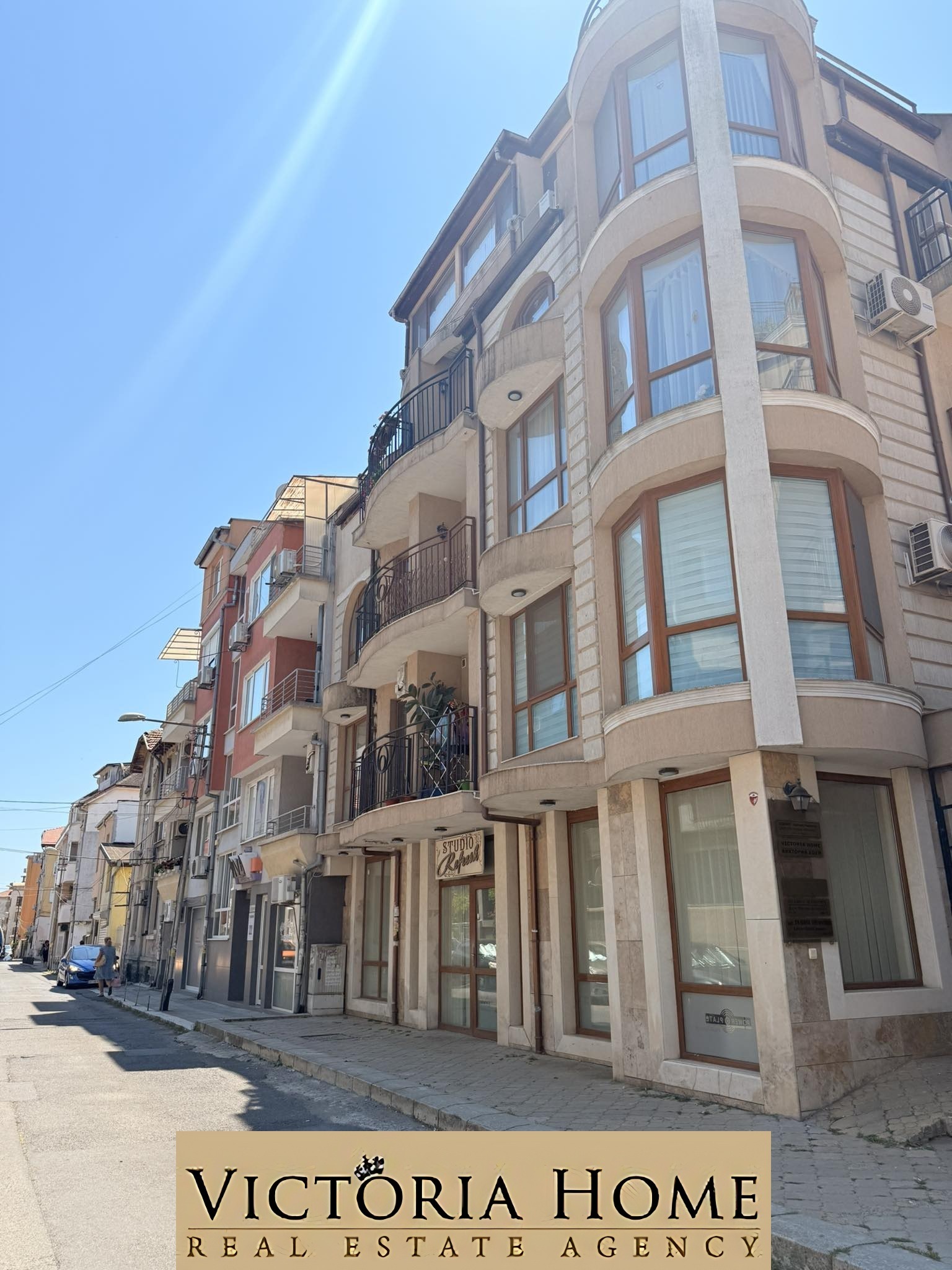 Намира се в нова сграда с Акт 16 - луксозно сторителство с парапети от ковано желязо, в самият супер център на града - в близост до пл. Тройката, церквата Св. Св. Кирил и Методий , Съдебната палата, офиси на няколко нотариуса са в съседство, банки, най-елитното училище в града Св. Св. Кирил и Методий , главната Александровска в най-добрата и част е на 2 мин, на около 500м от Морската градина, Летния театър и плажа и т.н. Всичко е наоколо и това създава много удобства и се пести време и енергия!