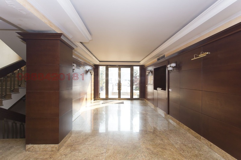 Слънчев многостаен апартамент в престижна сграда с денонощна охрана. Разпределението на жилището включва : просторна дневна с трапезария и оборудван кухненски бокс (55 кв.м.), три големи спални (съответно 22, 20 и 17 кв.м.), като към едната има собствена баня и тоалетна , още една баня и тоалетна и тоалетна за гости. Настилки - естествен паркет, гранит. Отдава се частично обзаведен с напълно оборудван кухненски бокс. Централна климатизация. Oтоплението е чрез ТЕЦ. Taксата за охрана и поддръжка на сградата е 100 EUR на месец.Намира се в кв. Изток на ул.'Латинка' 5, в близост до Борисова градина и метростанция 'Жолио Кюри'. Възможност за наемане на паркомясто на отделна цена.