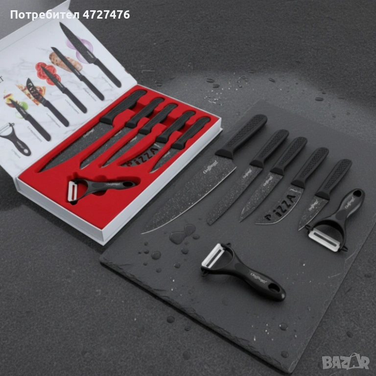 Комплект кухненски ножове – Cheffinger CF-MB08 от 6 части с мраморно покритие и магнитна кутия → Обява 53342155