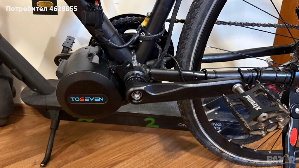 Среден мотор-Toseven DM-01 750w-с торк сензор-изчислява максимално колко енергия да се подаде от батерията при натиска върху педалите-от тук идва и по голямата икономия в сравнение с Бафанг моторите!5 скорости на мотора в три режима-Eco,City,Tour!Отключен мотор за програмиране с програма в лаптопа ви!Важно!Повечето мотори на пазара са заключени фабрично!Премиум лапа-Oxygen както и удължител на кормилото Oxygen!Амортисьорно колче на седалката-регулируемо!