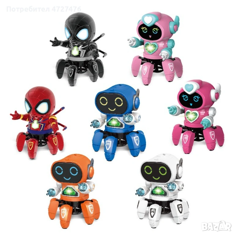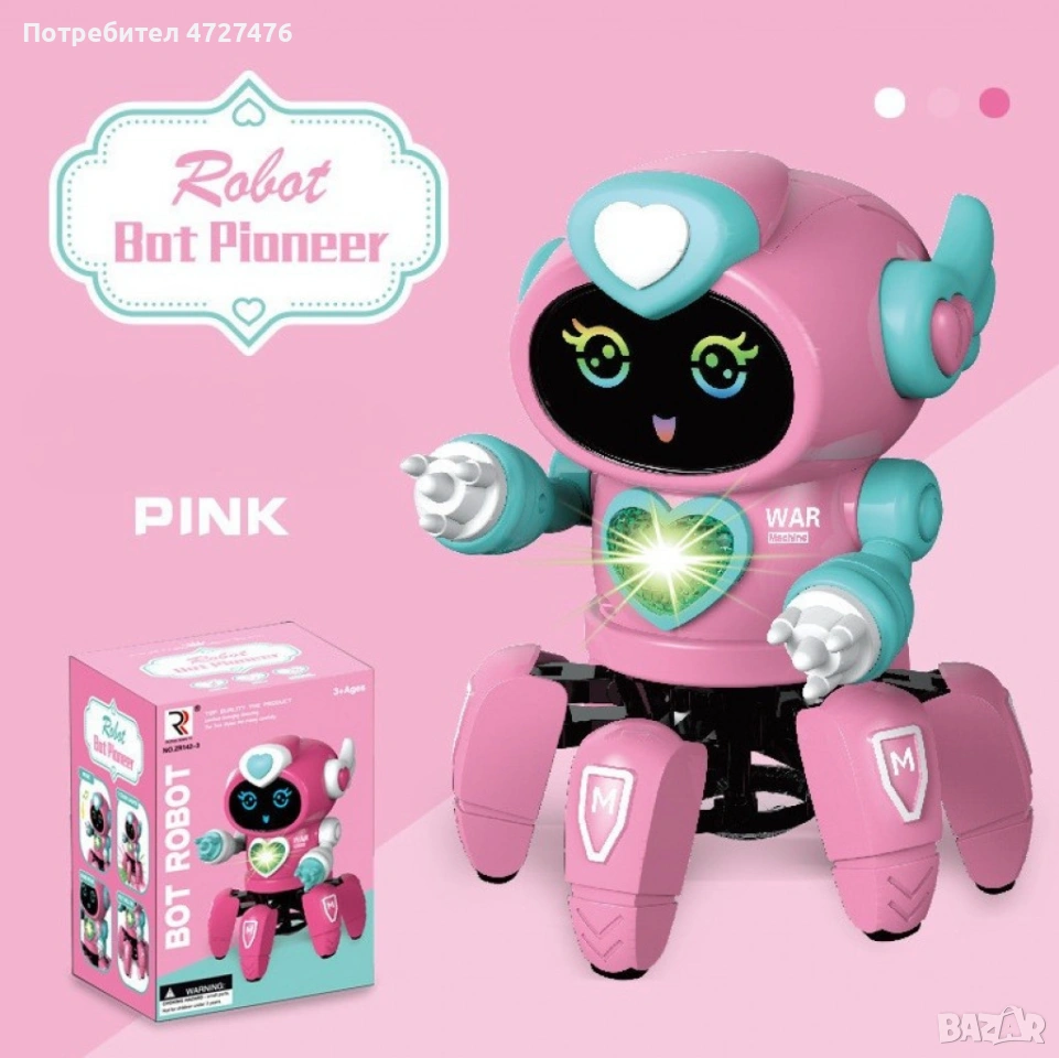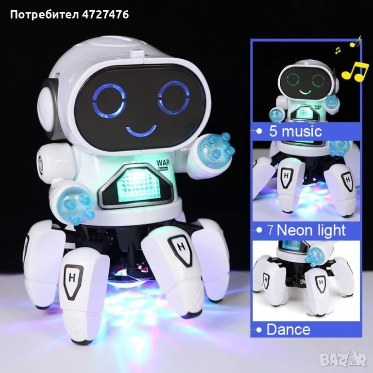 Танцуващ мини робот с LED светлини и 360 градуса ротация. Екологична пластмаса → Обява 53342250