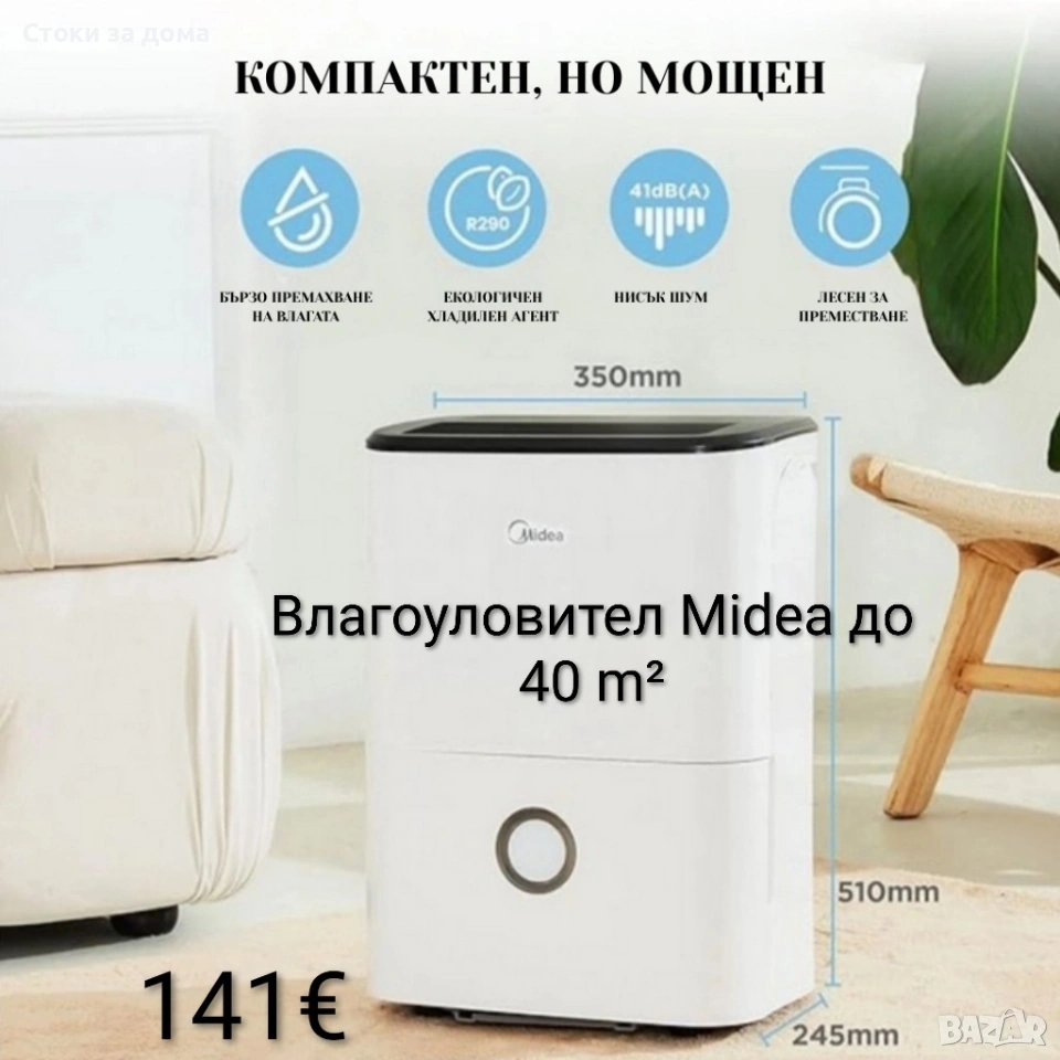 Влагоуловител/влагоабсорбатор Midea Smart Wi-Fi, за до 40 m²