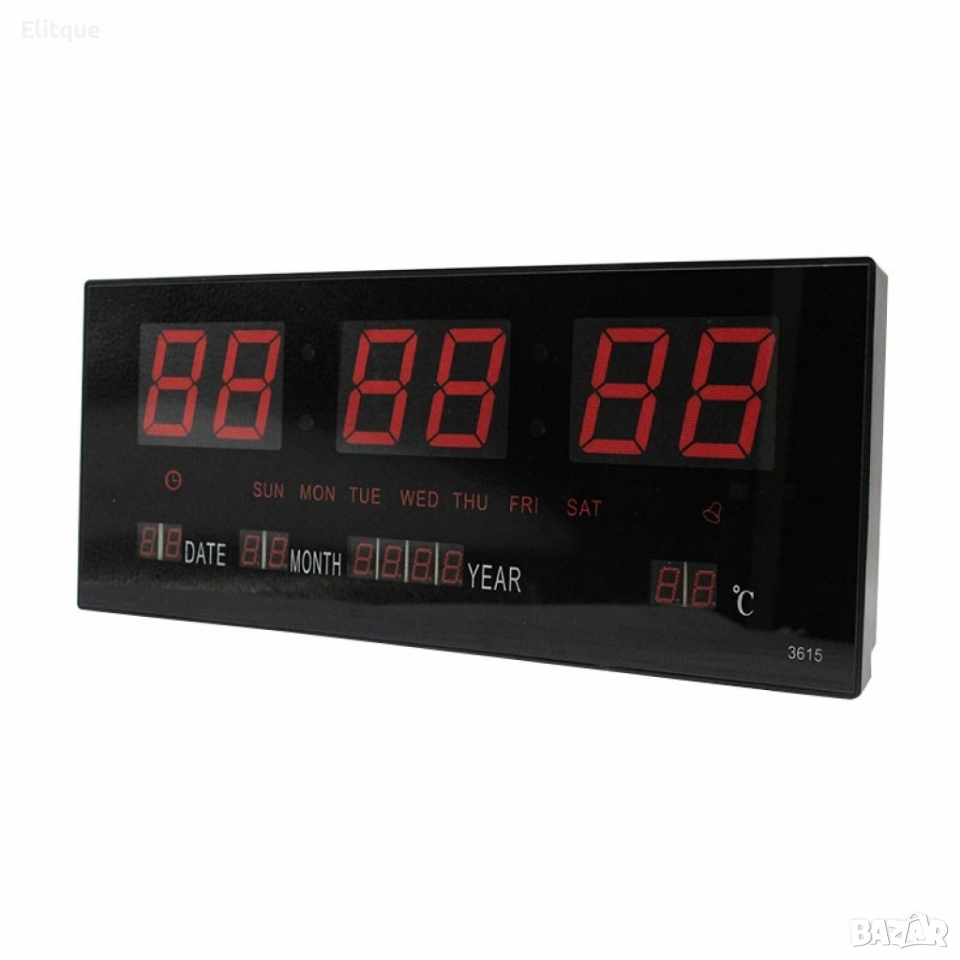 Голям електронен часовник за стена JH3615 Практичен и стилен електронен часовник с голям дисплей, който осигурява лесна видимост от разстояние. Подходящ за дом, офис, училище или всяко помещение, където е необходима точна и удобна визуализация на времето. Предимства: Голям и ясен дисплей за лесно отчитане на часа Стилен и модерен дизайн, подходящ за различни интериори Лесен за монтаж на стена Поддържа точно време и надеждна работа Идеален за помещения, в които се изисква прегледност и функционалност. Доставка с Еконт с опция преглед и тест до 3 работни дни.