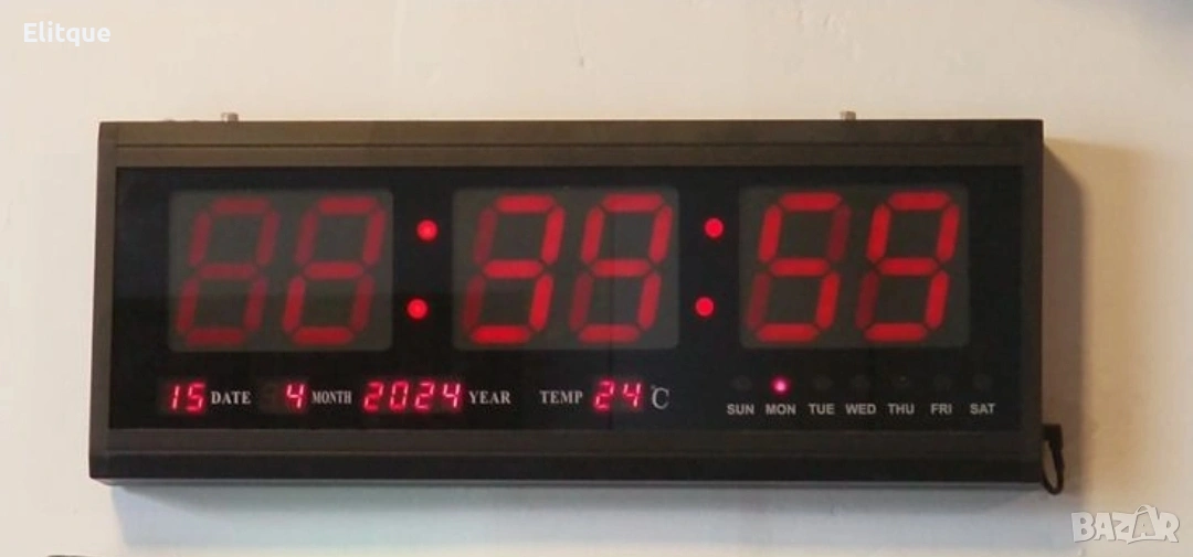 Голям електронен часовник за стена JH3615 Практичен и стилен електронен часовник с голям дисплей, който осигурява лесна видимост от разстояние. Подходящ за дом, офис, училище или всяко помещение, където е необходима точна и удобна визуализация на времето. Предимства: Голям и ясен дисплей за лесно отчитане на часа Стилен и модерен дизайн, подходящ за различни интериори Лесен за монтаж на стена Поддържа точно време и надеждна работа Идеален за помещения, в които се изисква прегледност и функционалност. Доставка с Еконт с опция преглед и тест до 3 работни дни.
