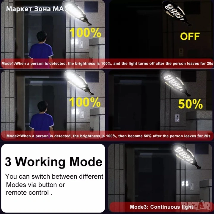 Лампата разполага с три интелигентни режима на работа: