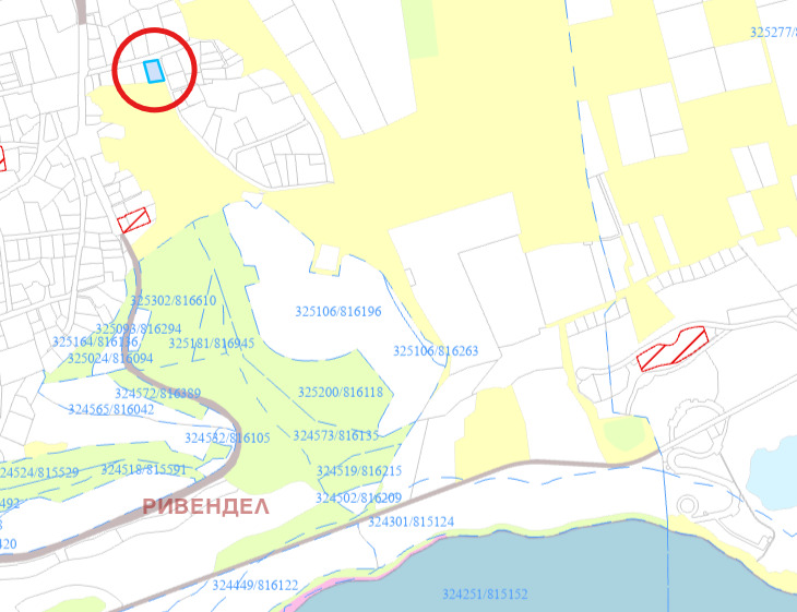 Урегулиран поземлен имот в с. Топола, с площ от 1113 кв. м. Непрекъсната гледка към морето и не може да бъде строено пред него.