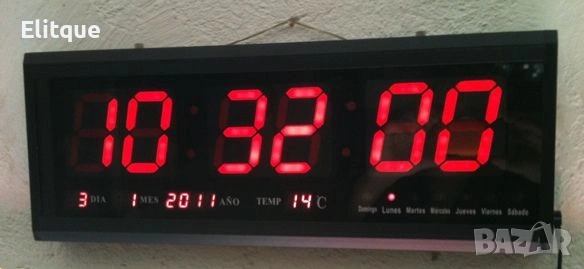 Голям електронен часовник за стена JH3615 Практичен и стилен електронен часовник с голям дисплей, който осигурява лесна видимост от разстояние. Подходящ за дом, офис, училище или всяко помещение, където е необходима точна и удобна визуализация на времето. Предимства: Голям и ясен дисплей за лесно отчитане на часа Стилен и модерен дизайн, подходящ за различни интериори Лесен за монтаж на стена Поддържа точно време и надеждна работа Идеален за помещения, в които се изисква прегледност и функционалност. Доставка с Еконт с опция преглед и тест до 3 работни дни.