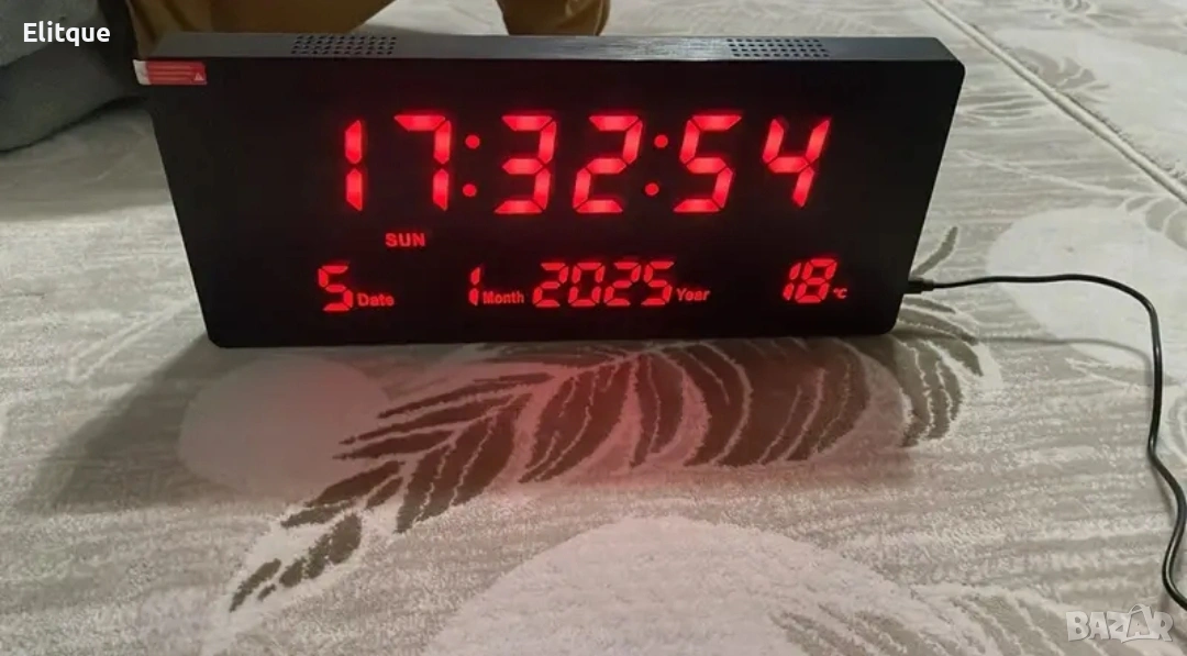 Голям електронен часовник за стена JH3615 Практичен и стилен електронен часовник с голям дисплей, който осигурява лесна видимост от разстояние. Подходящ за дом, офис, училище или всяко помещение, където е необходима точна и удобна визуализация на времето. Предимства: Голям и ясен дисплей за лесно отчитане на часа Стилен и модерен дизайн, подходящ за различни интериори Лесен за монтаж на стена Поддържа точно време и надеждна работа Идеален за помещения, в които се изисква прегледност и функционалност. Доставка с Еконт с опция преглед и тест до 3 работни дни.