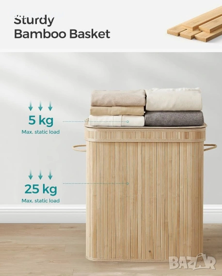 Бамбуков кош за пране SONGMICS → Обява 53342605