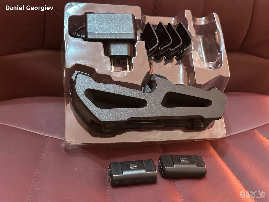Работи с нормални AA батерии или акумулаторни, които не са включени в комплекта, но разполагам с чисто нова безжична зарядна станция за 2 бр. Джойстици, която включва две оригинални батерии за контролер!