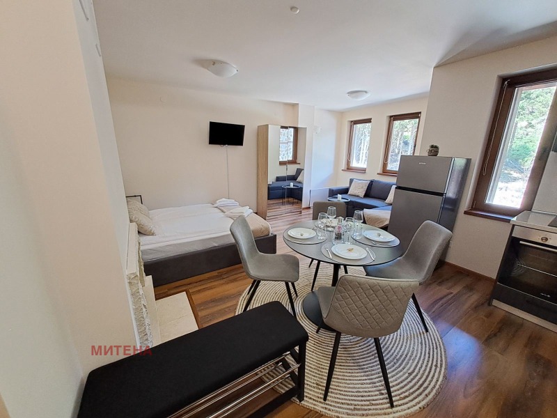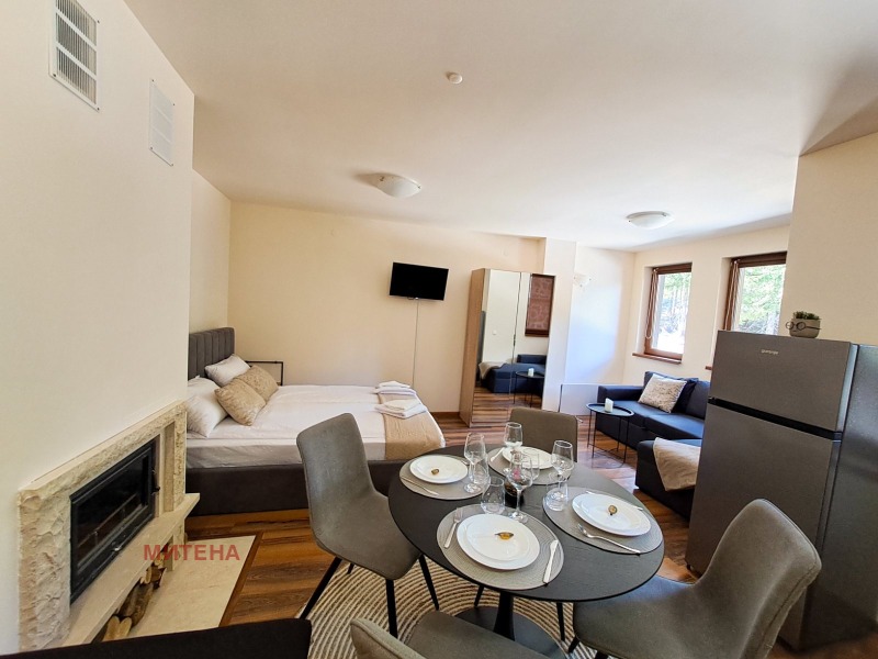 Жилището се отдава тип нощувки за туристи - работещ бизнес Изложението е към величествена борова гора .Разпределение:-едно пространствено помещение с отделен кухн.бокс ,баня и тоалетна , камина довършен с настилки -необзаведен Сградата е с разрешение за ползване от 2024 г.