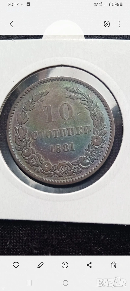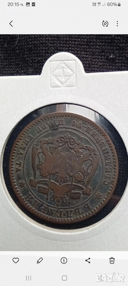 монета 1881г., снимка 1 - Нумизматика и бонистика - 53343287 монета 1881г., снимка 2 - Нумизматика и бонистика - 53343287 1/2